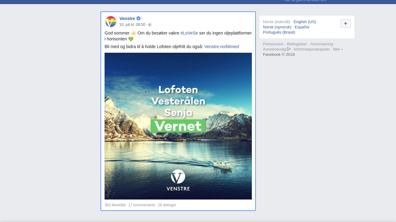 God sommer ☀️ Om du besøker vakre #LoVeSe ser du ingen oljeplattformer i horisonten 💚 Bli med og bidra til å holde Lofoten oljefritt du også: Venstre.no/blimed