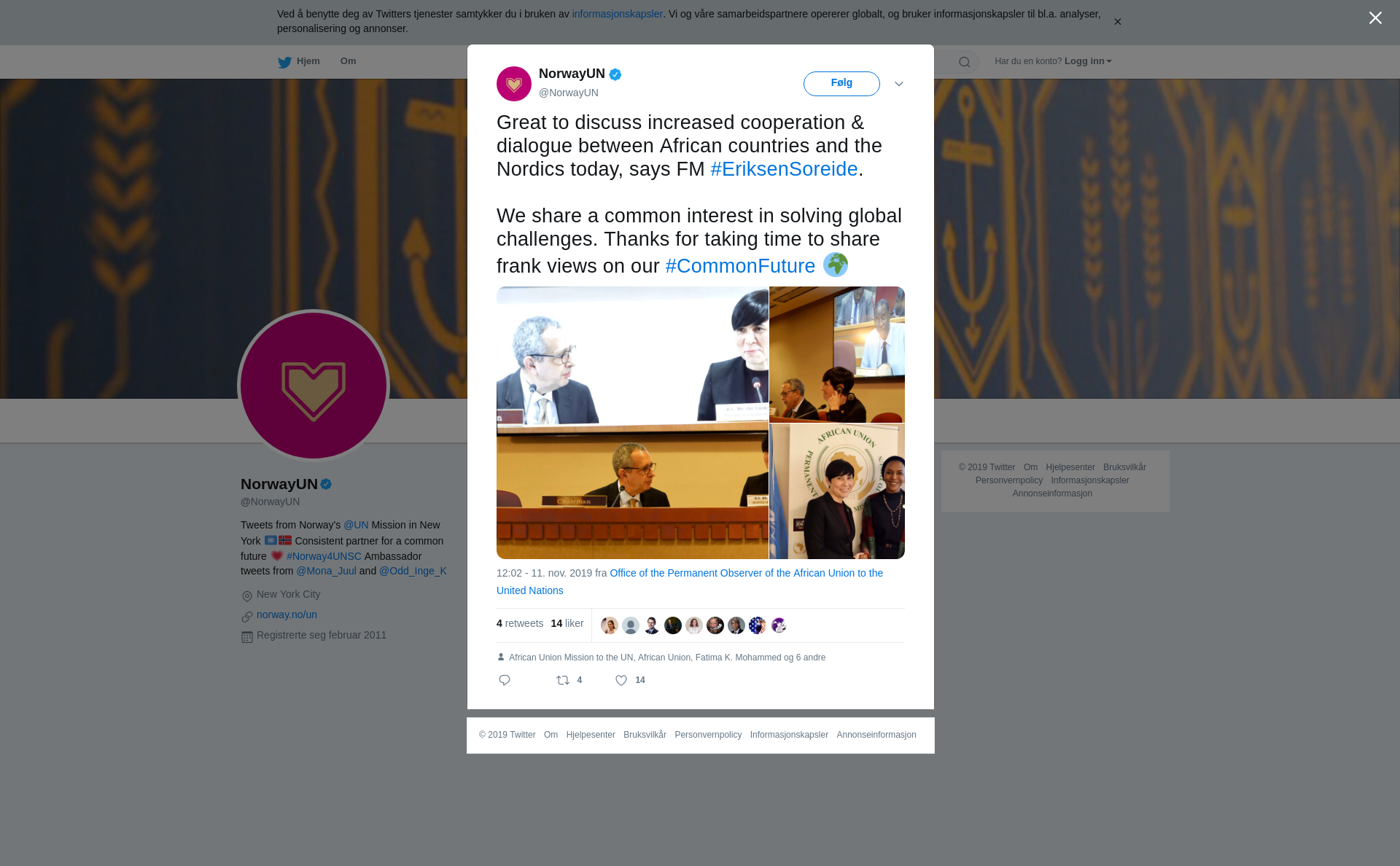 RT @NorwayUN: Great to discuss increased cooperation & dialogue between African countries and the Nordics today, says FM #EriksenSoreide.