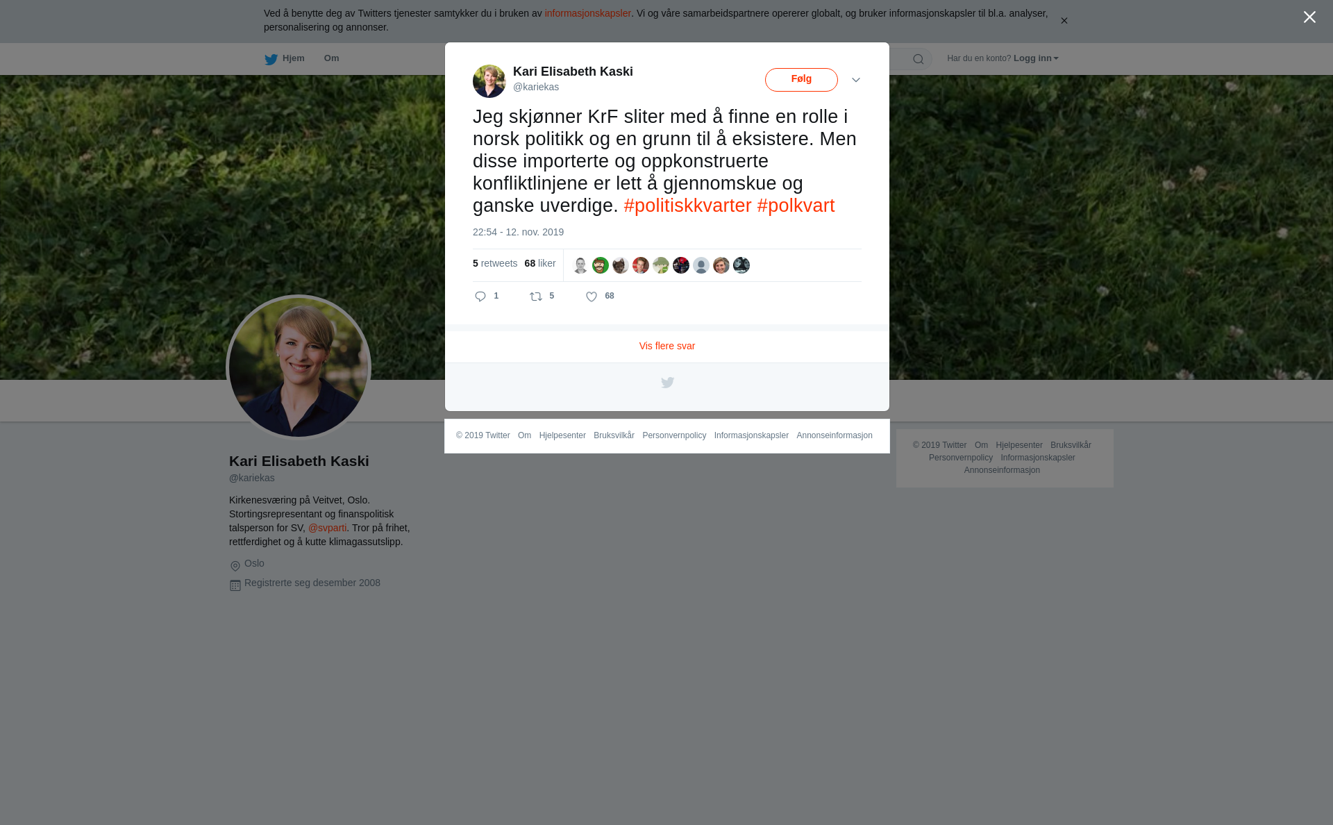 Jeg skjønner KrF sliter med å finne en rolle i norsk politikk og en grunn til å eksistere. Men disse importerte og oppkonstruerte konfliktlinjene er lett å gjennomskue og ganske uverdige. #politiskkvarter #polkvart