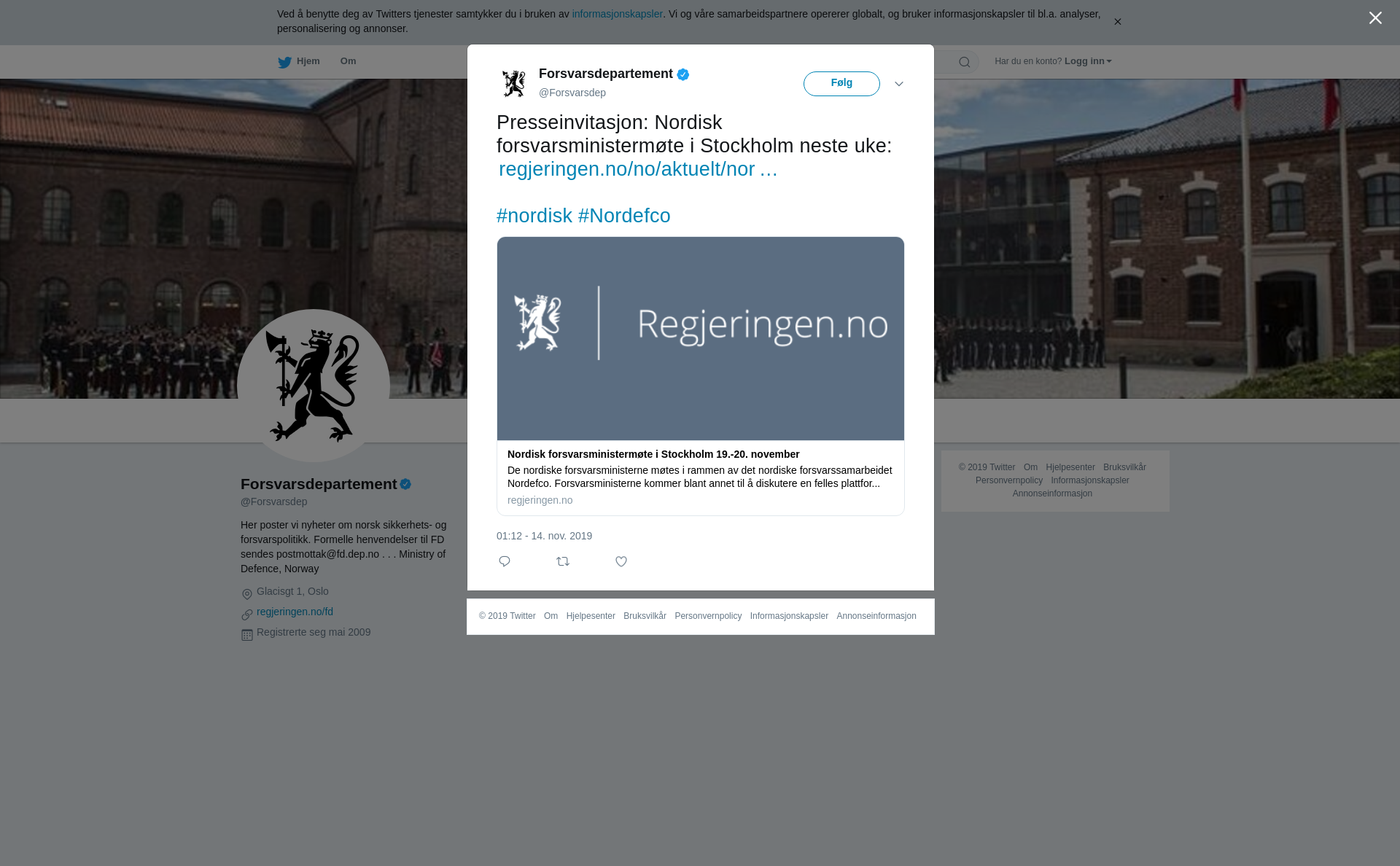 Nordisk forsvarsministermøte i Stockholm 19.-20. november