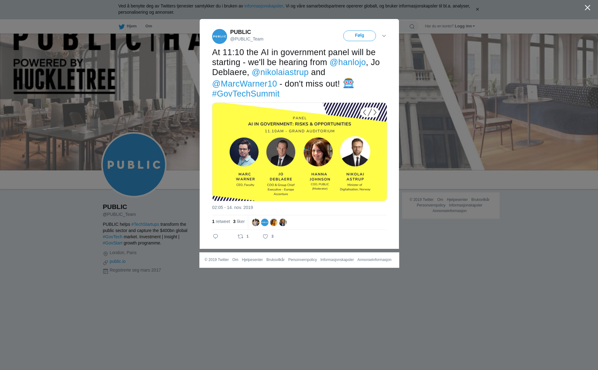 RT @PUBLIC_Team: At 11:10 the AI in government panel will be starting - we'll be hearing from @hanlojo, Jo Deblaere, @nikolaiastrup and @MarcWarner10 - don't miss out! 🤖#GovTechSummit https://t.co/E5VdWO08mR