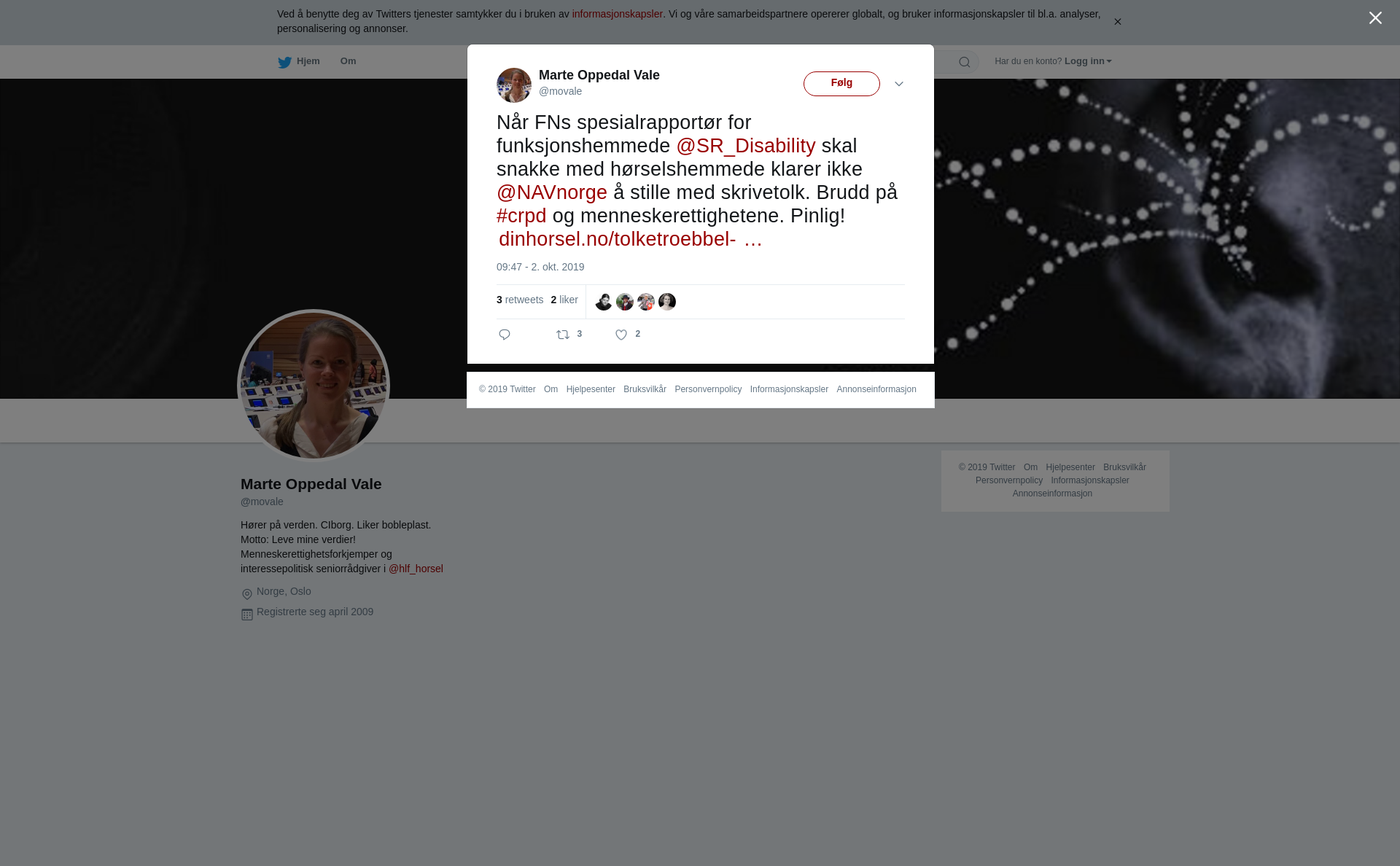 RT @movale: Når FNs spesialrapportør for funksjonshemmede @SR_Disability skal snakke med hørselshemmede klarer ikke @NAVnorge å stille med skrivetolk. Brudd på #crpd og menneskerettighetene. Pinlig! https://t.co/fc1nmfSqUS