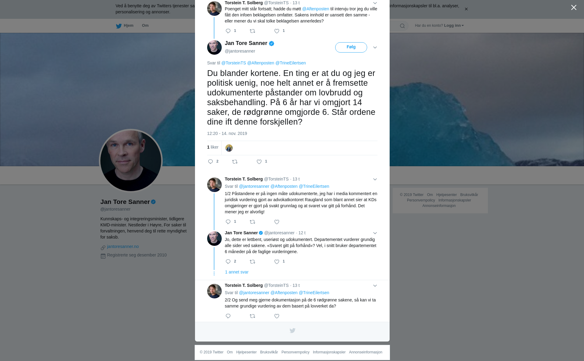 @TorsteinTS @Aftenposten @TrineEilertsen Du blander kortene. En ting er at du og jeg er politisk uenig, noe helt annet er å fremsette udokumenterte påstander om lovbrudd og saksbehandling. På 6 år har vi omgjort 14 saker, de rødgrønne omgjorde 6. Står ordene dine ift denne forskjellen?