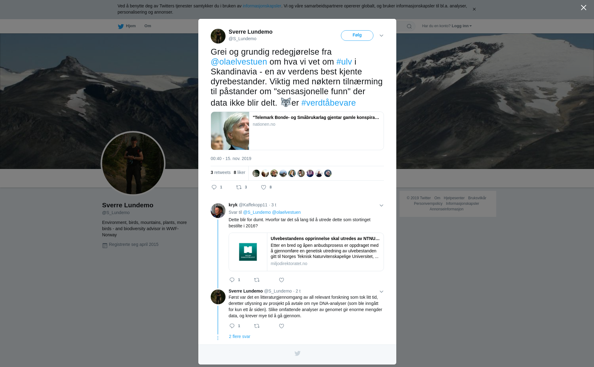 RT @S_Lundemo: Grei og grundig redegjørelse fra @olaelvestuen om hva vi vet om #ulv i Skandinavia - en av verdens best kjente dyrebestander. Viktig med nøktern tilnærming til påstander om "sensasjonelle funn" der data ikke blir delt. 🐺er #verdtåbevare