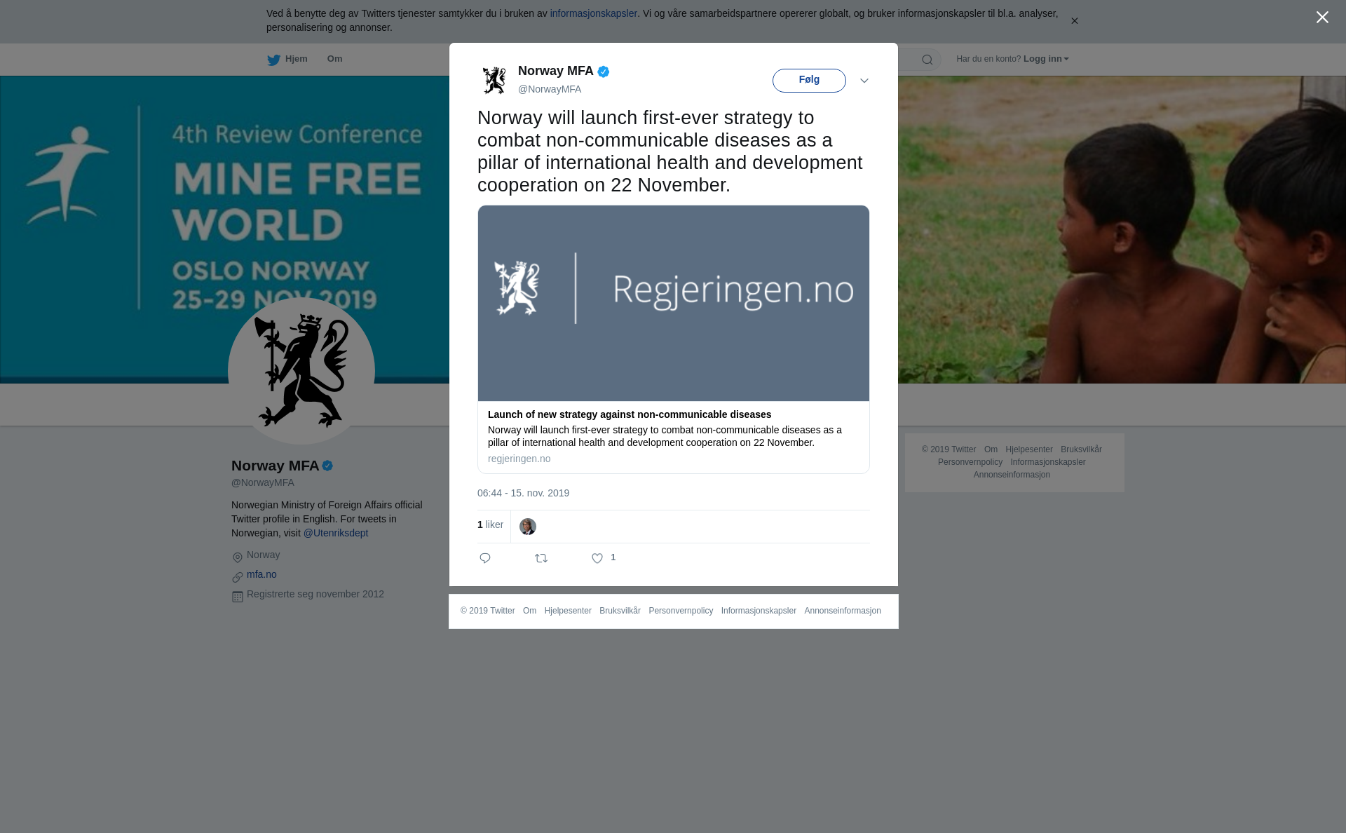 Norway will launch first-ever strategy to combat non-communicable diseases as a pillar of international health and development cooperation on 22 November.