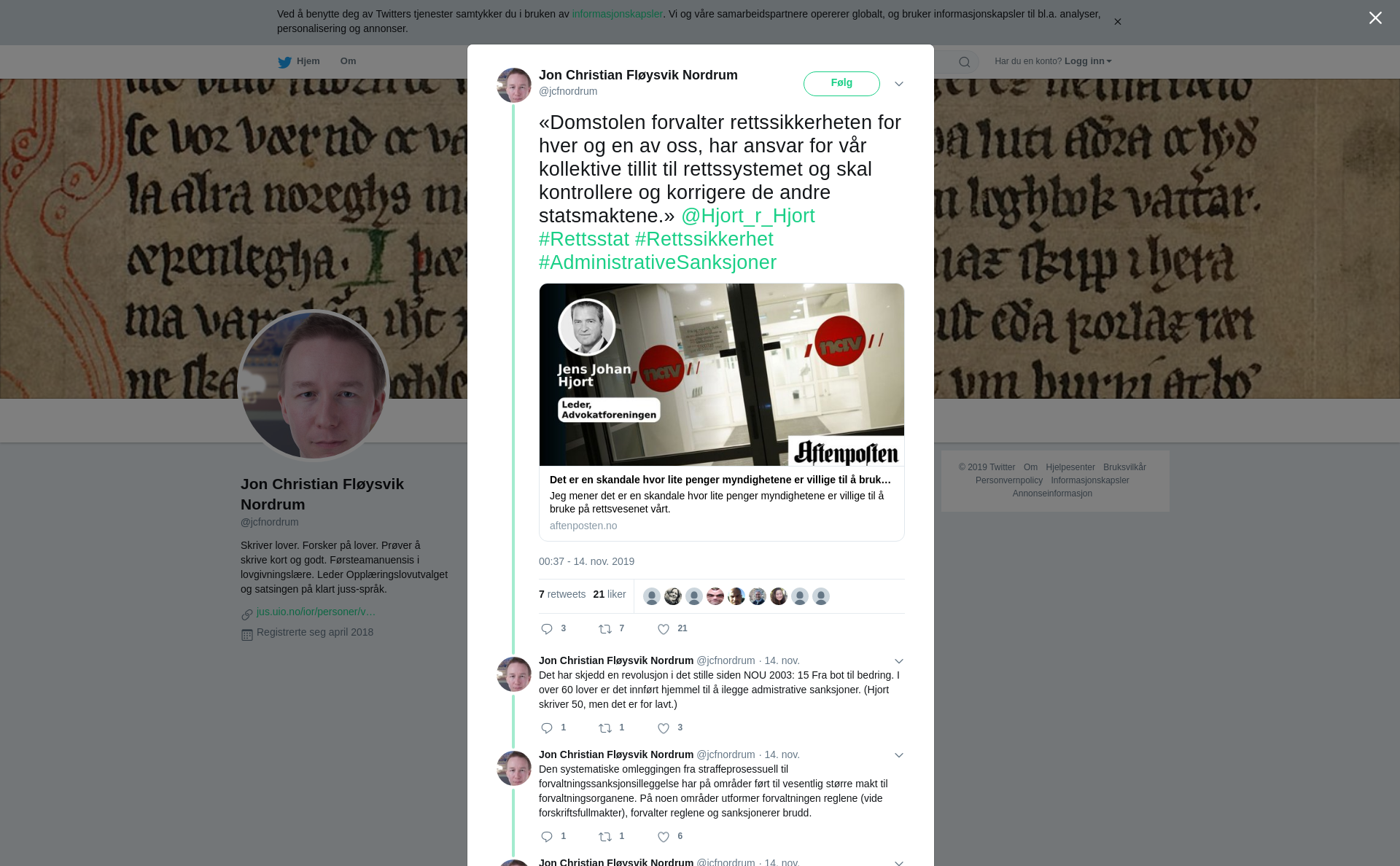 RT @jcfnordrum: «Domstolen forvalter rettssikkerheten for hver og en av oss, har ansvar for vår kollektive tillit til rettssystemet og skal kontrollere og korrigere de andre statsmaktene.» @Hjort_r_Hjort #Rettsstat #Rettssikkerhet #AdministrativeSanksjoner https://t.co/z1Kudw4fxy