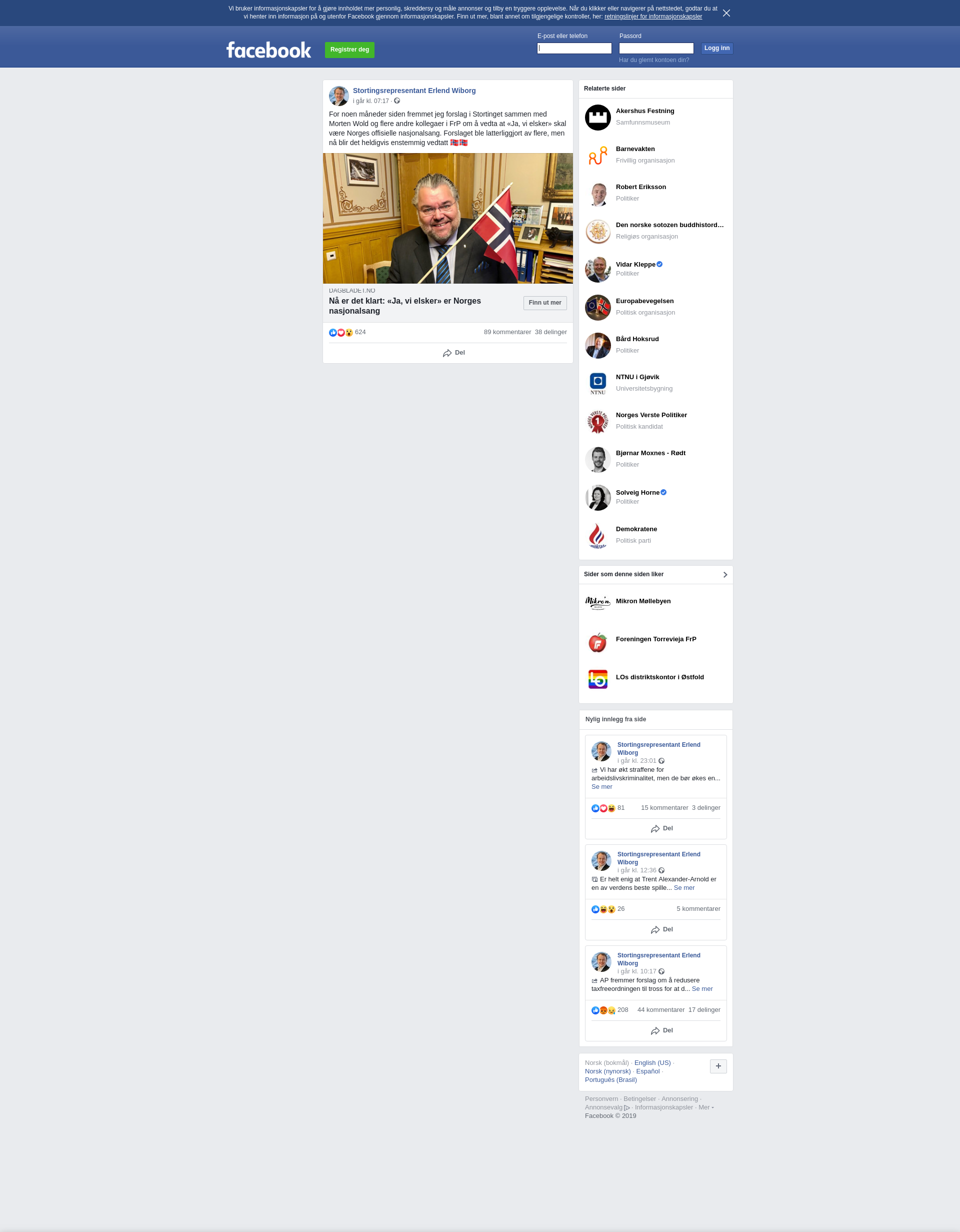 For noen måneder siden fremmet jeg forslag i Stortinget sammen med Morten Wold og flere andre kollegaer i FrP om å vedta at «Ja, vi elsker» skal være Norges offisielle nasjonalsang. Forslaget ble latterliggjort av flere, men nå blir det heldigvis enstemmig vedtatt 🇳🇴🇳🇴