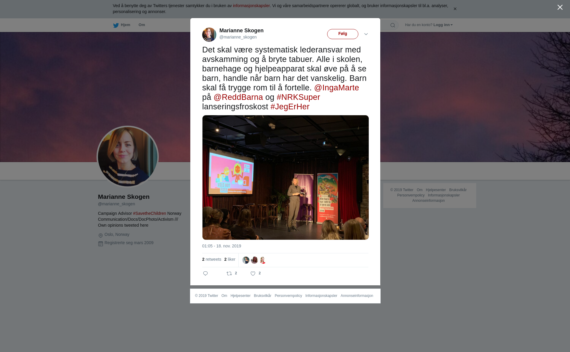 RT @marianne_skogen: Det skal være systematisk lederansvar med avskamming og å bryte tabuer. Alle i skolen, barnehage og hjelpeapparat skal øve på å se barn, handle når barn har det vanskelig. Barn skal få trygge rom til å fortelle. @IngaMarte på @ReddBarna og #NRKSuper lanseringsfroskost #JegErHer https://t.co/BUWQ7UpXay