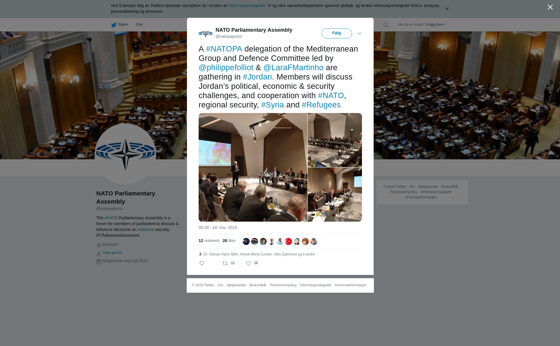 RT @natopapress: A #NATOPA delegation of the Mediterranean Group and Defence Committee led by @philippefolliot & @LaraFMartinho are gathering in #Jordan. Members will discuss Jordan’s political, economic & security challenges, and cooperation with #NATO, regional security, #Syria and #Refugees https://t.co/ysF3px1DKe