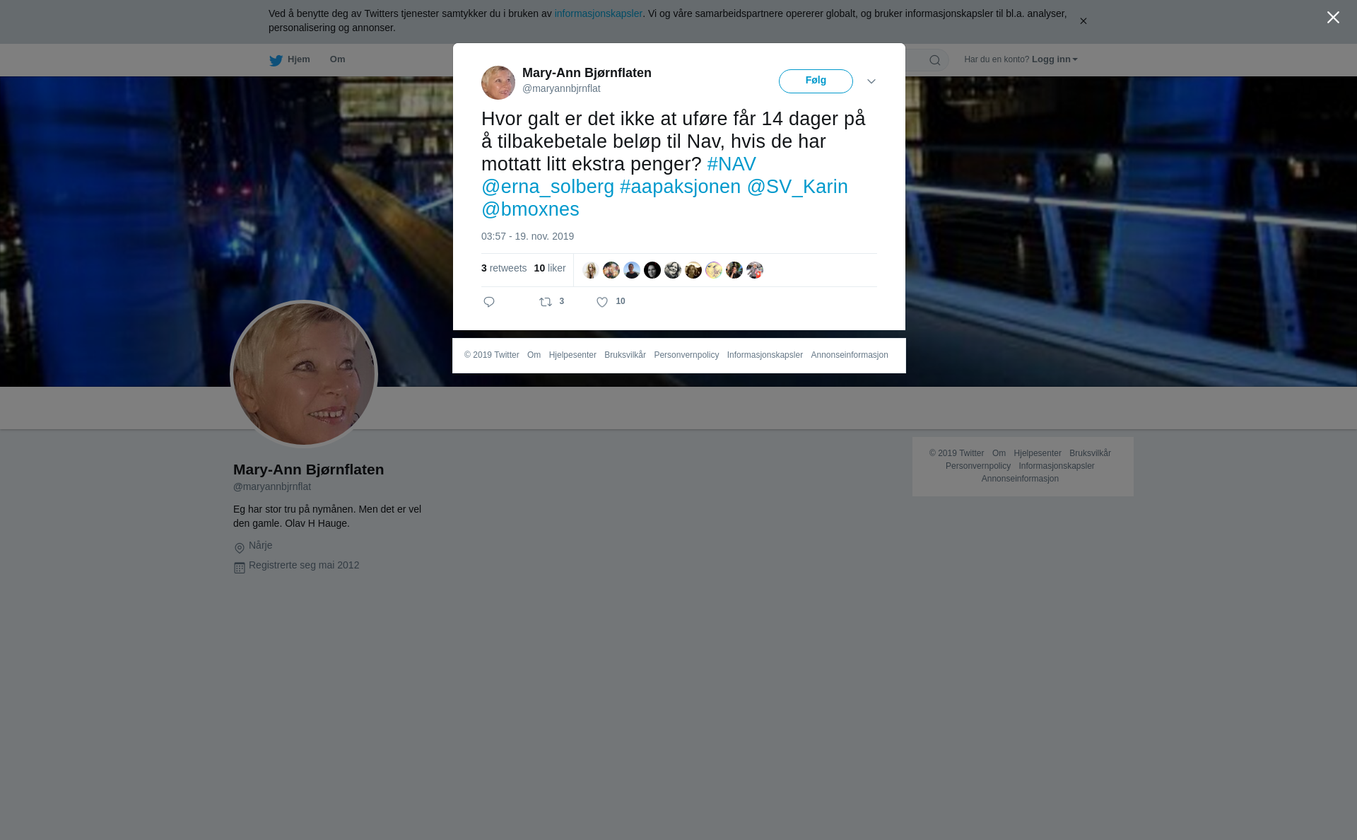 RT @maryannbjrnflat: Hvor galt er det ikke at uføre får 14 dager på å tilbakebetale beløp til Nav, hvis de har mottatt litt ekstra penger? #NAV @erna_solberg #aapaksjonen @SV_Karin @bmoxnes