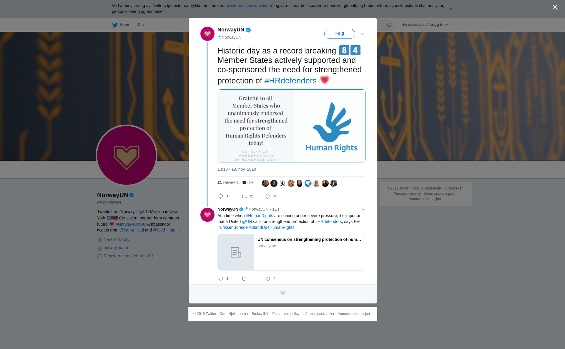 RT @NorwayUN: Historic day as a record breaking 8️⃣4️⃣ Member States actively supported and co-sponsored the need for strengthened protection of #HRdefenders 💗 https://t.co/kScDjeNgzV