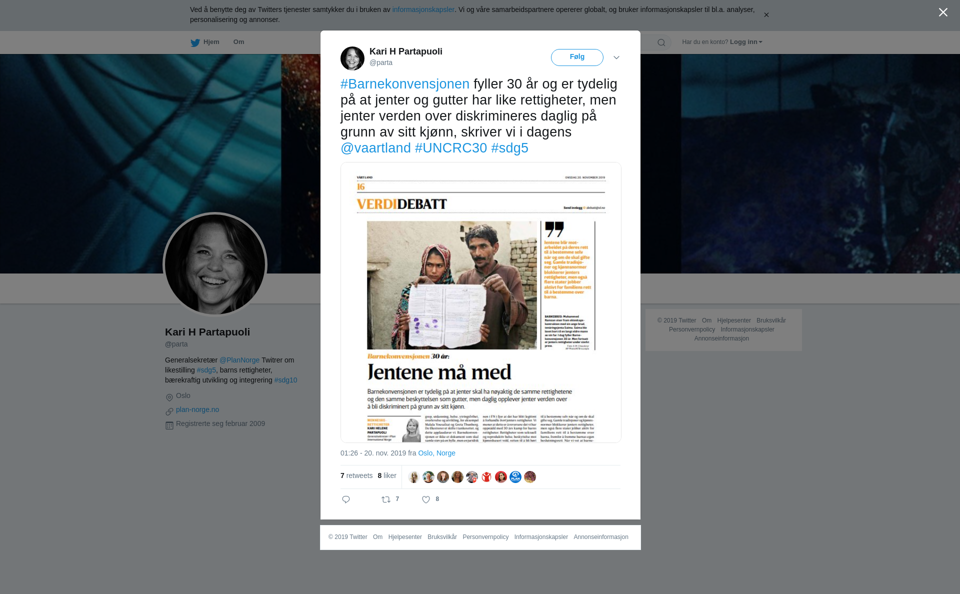 RT @parta: #Barnekonvensjonen fyller 30 år og er tydelig på at jenter og gutter har like rettigheter, men jenter verden over diskrimineres daglig på grunn av sitt kjønn, skriver vi i dagens @vaartland #UNCRC30 #sdg5 https://t.co/fqsiKf2RTx