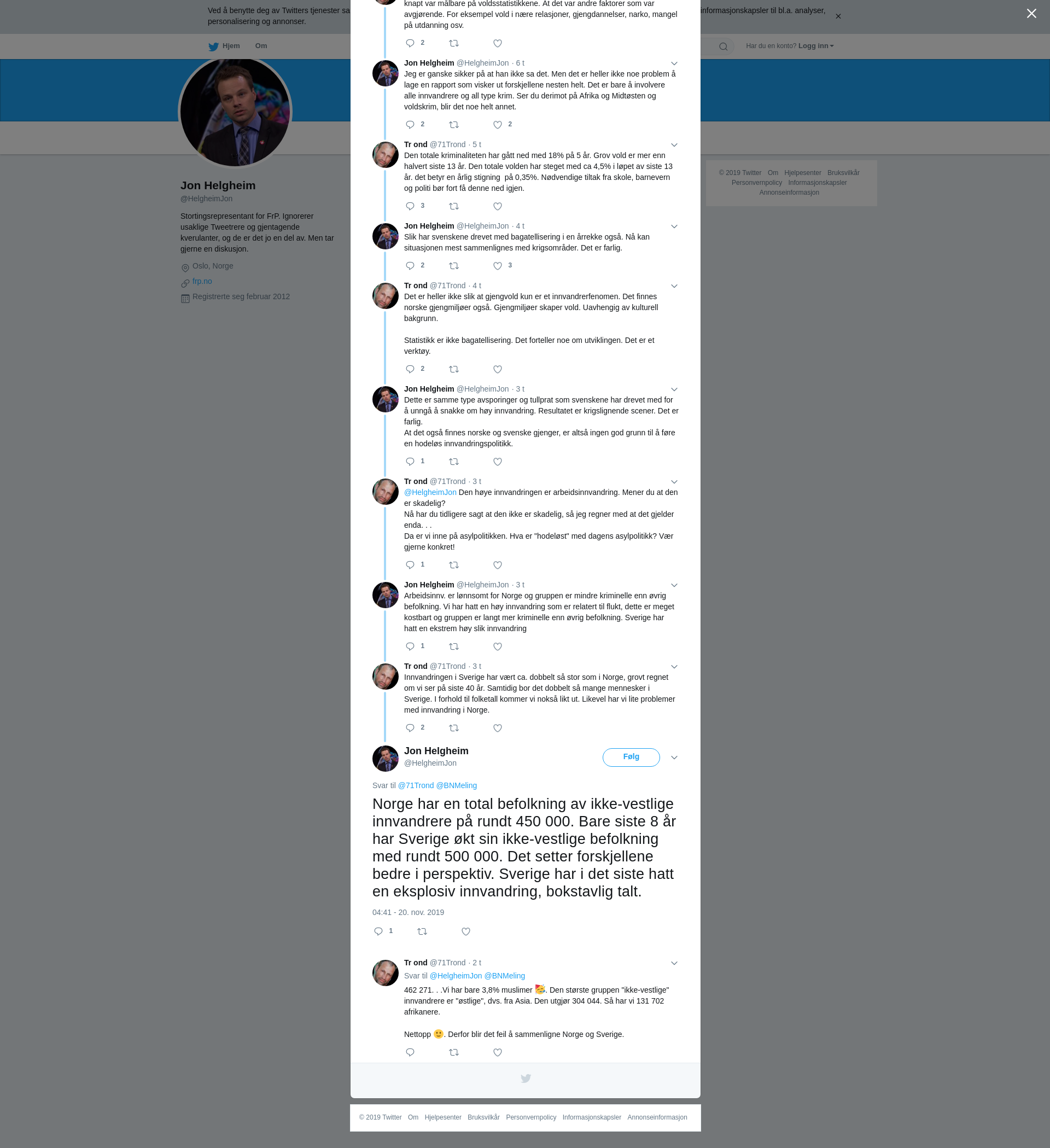 @71Trond @BNMeling Norge har en total befolkning av ikke-vestlige innvandrere på rundt 450 000. Bare siste 8 år har Sverige økt sin ikke-vestlige befolkning med rundt 500 000. Det setter forskjellene bedre i perspektiv. Sverige har i det siste hatt en eksplosiv innvandring, bokstavlig talt.