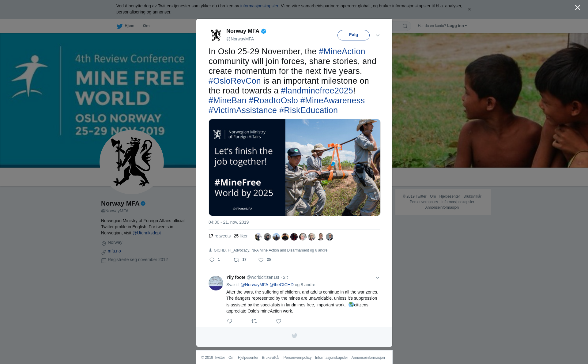 In Oslo 25-29 November, the #MineAction community will join forces, share stories, and create momentum for the next five years. #OsloRevCon is an important milestone on the road towards a #landminefree2025! #MineBan #RoadtoOslo #MineAwareness #VictimAssistance #RiskEducation https://t.co/odw1RJqK18