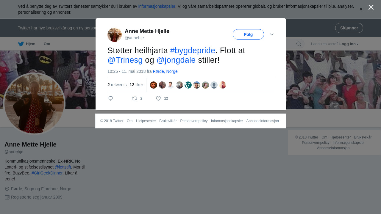 RT @annehje: Støtter heilhjarta #bygdepride. Flott at @Trinesg og @jongdale stiller!