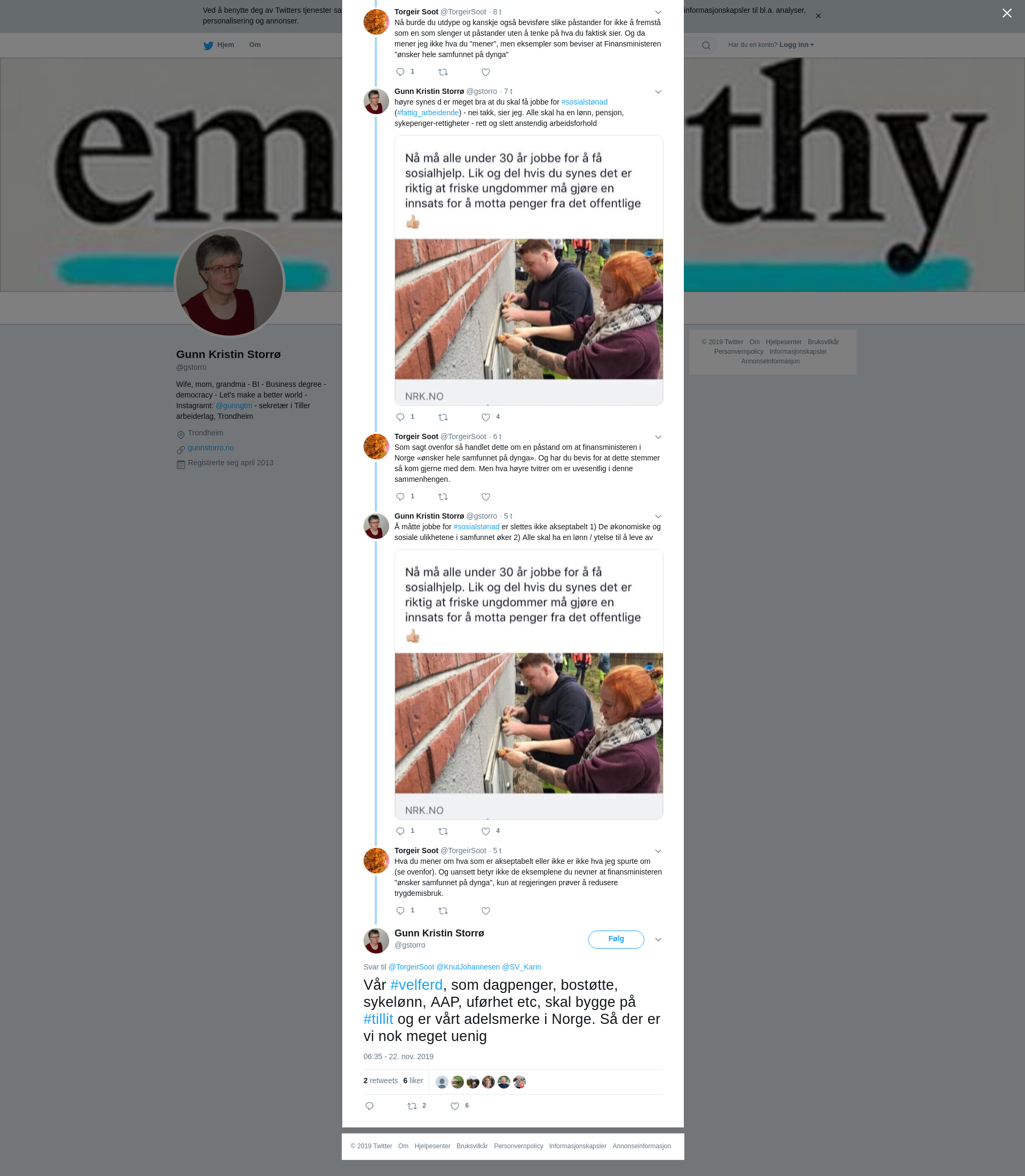 RT @gstorro: @TorgeirSoot @KnutJohannesen @SV_Karin Vår #velferd, som dagpenger, bostøtte, sykelønn, AAP, uførhet etc, skal bygge på #tillit og er vårt adelsmerke i Norge. Så der er vi nok meget uenig
