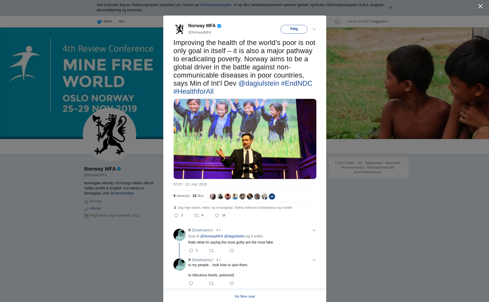 Improving the health of the world’s poor is not only goal in itself – it is also a major pathway to eradicating poverty. Norway aims to be a global driver in the battle against non-communicable diseases in poor countries, says Min of Int’l Dev @dagiulstein #EndNDC #HealthforAll https://t.co/ty4gIwAk6C