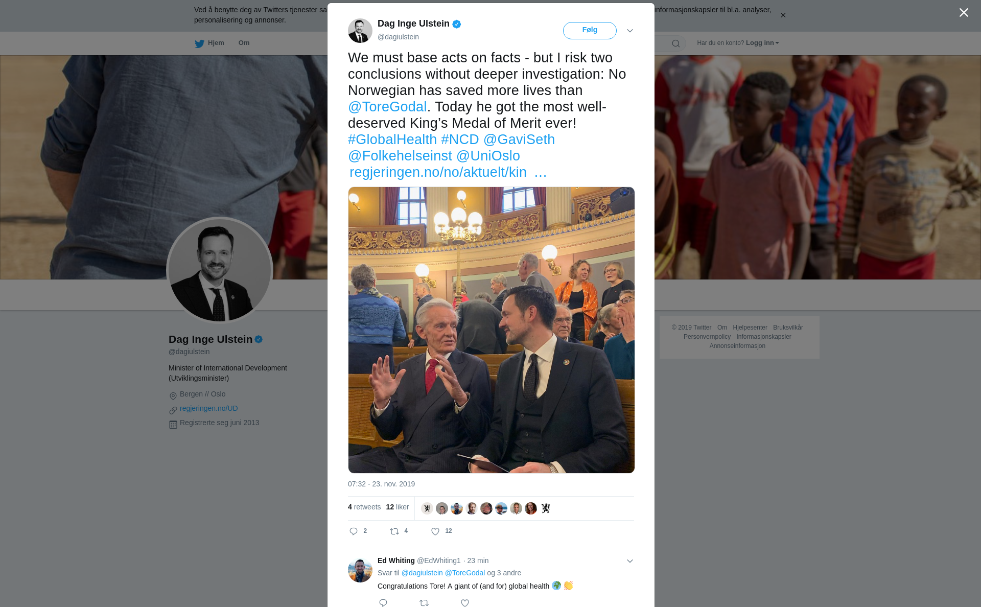 - Doctor Tore Godal cured politicians of their paralysis. No single Norwegian has ever saved as many lives, Minister Ulstein said in honor of the man who today received the King’s Medal of Merit for his work for global health.