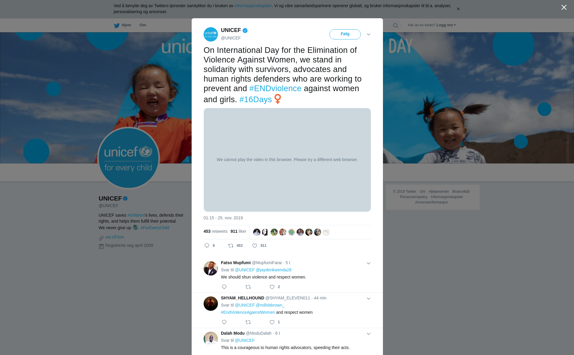 RT @UNICEF: On International Day for the Elimination of Violence Against Women, we stand in solidarity with survivors, advocates and human rights defenders who are working to prevent and #ENDviolence against women and girls. #16Days https://t.co/vFSlAgChPV