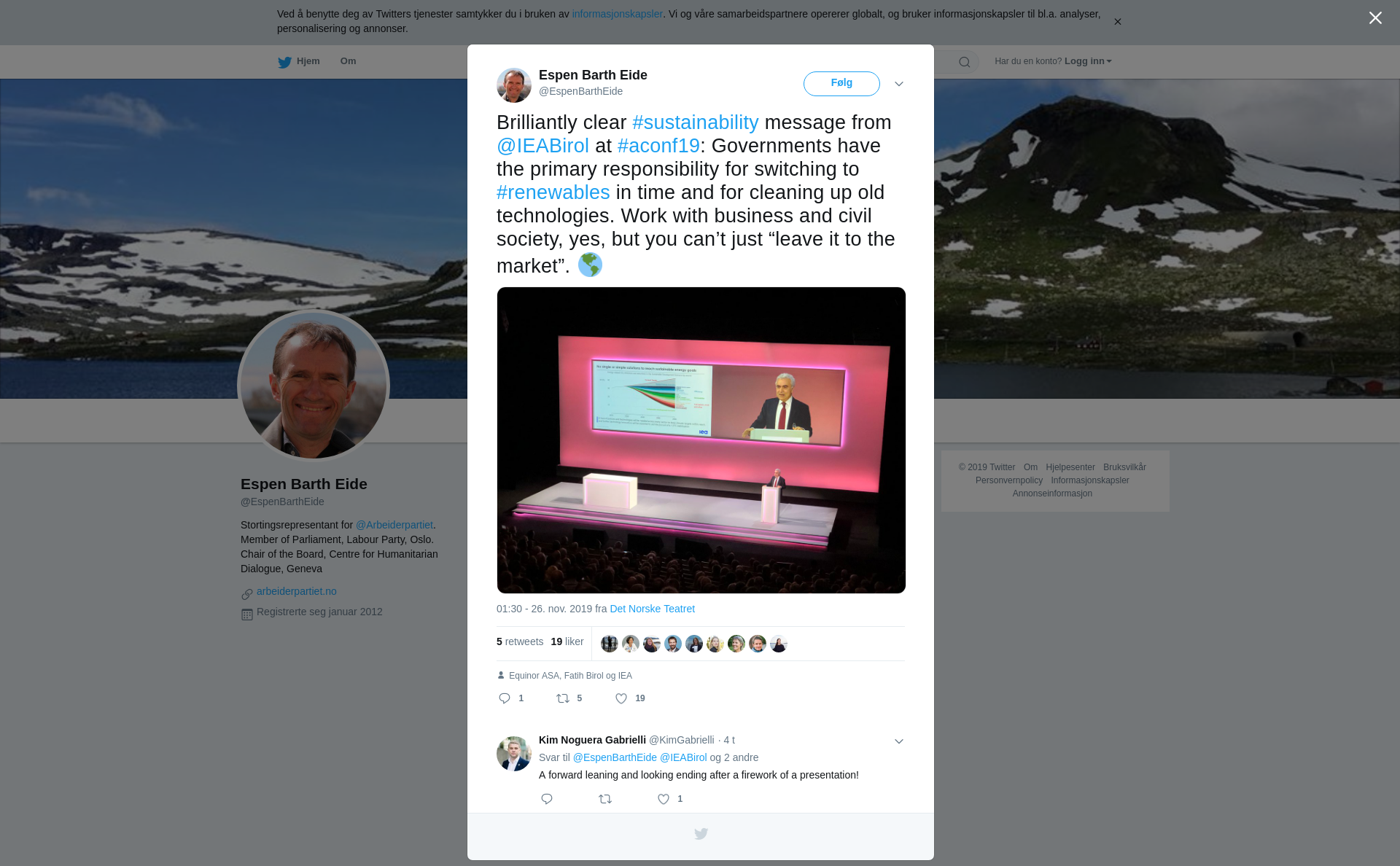 Brilliantly clear #sustainability message from @IEABirol at #aconf19: Governments have the primary responsibility for switching to #renewables in time and for cleaning up old technologies. Work with business and civil society, yes, but you can’t just “leave it to the market”. 🌎 https://t.co/nADwCNmP0f