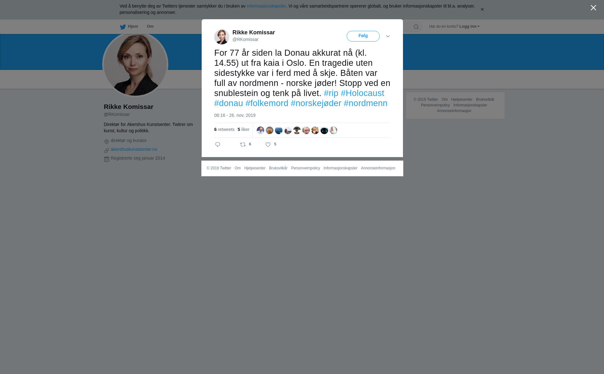 RT @RKomissar: For 77 år siden la Donau akkurat nå (kl. 14.55) ut fra kaia i Oslo. En tragedie uten sidestykke var i ferd med å skje. Båten var full av nordmenn - norske jøder! Stopp ved en snublestein og tenk på livet. #rip #Holocaust #donau #folkemord #norskejøder #nordmenn