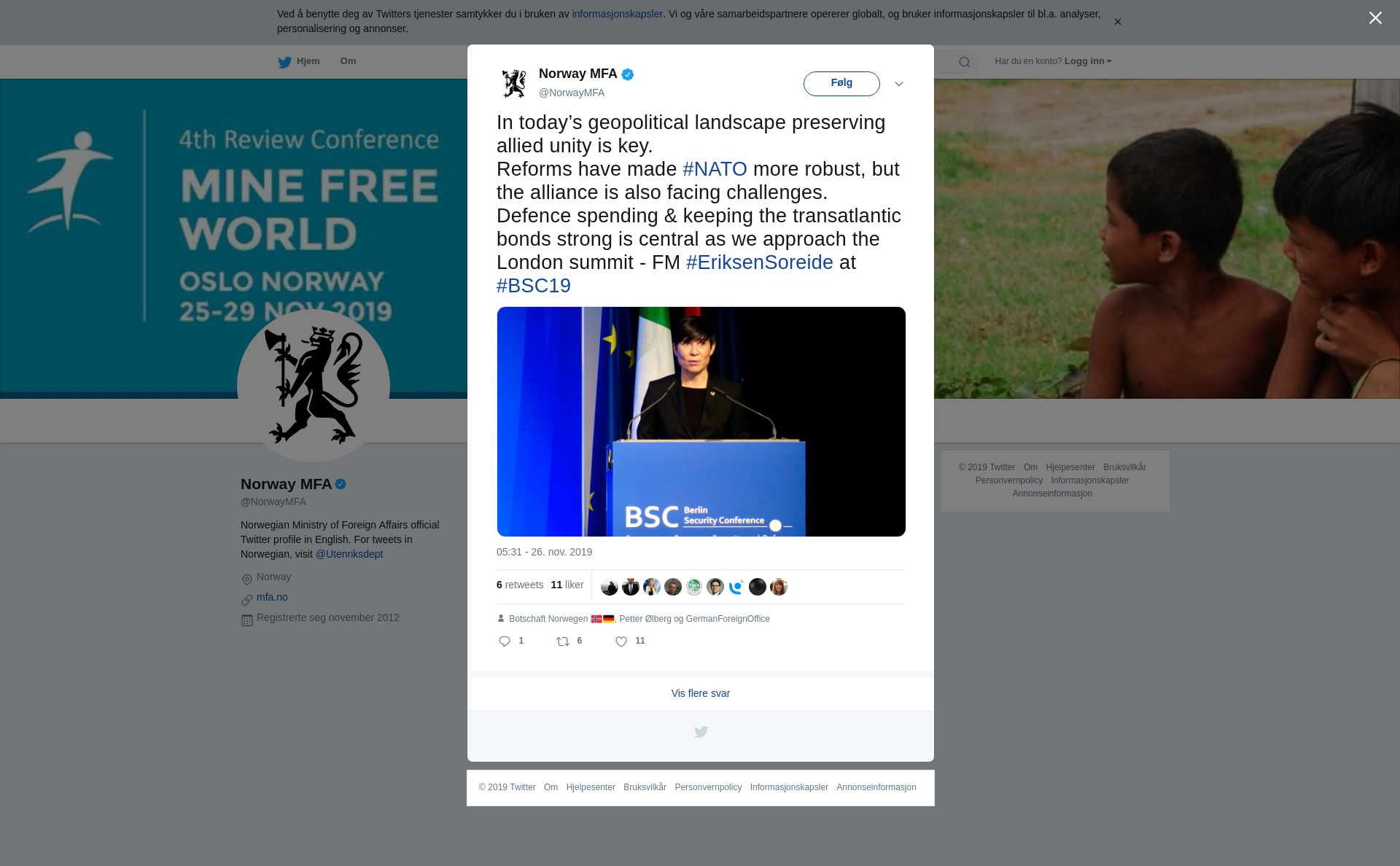 Reforms have made #NATO more robust, but the alliance is also facing challenges. Defence spending & keeping the transatlantic bonds strong is central as we approach the London summit - FM #EriksenSoreide at #BSC19 https://t.co/bvv7NSUlrw