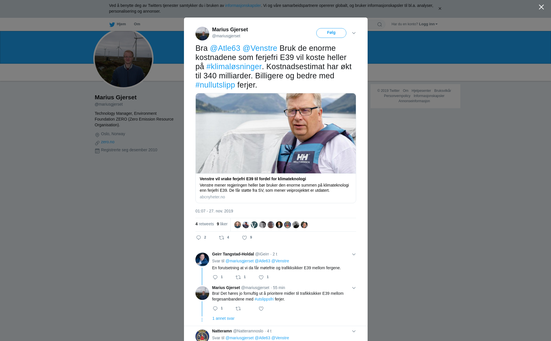RT @mariusgjerset: Bra @Atle63 @Venstre Bruk de enorme kostnadene som ferjefri E39 vil koste heller på #klimaløsninger. Kostnadsestimat har økt til 340 milliarder. Billigere og bedre med #nullutslipp ferjer. https://t.co/50mZNsFVAj