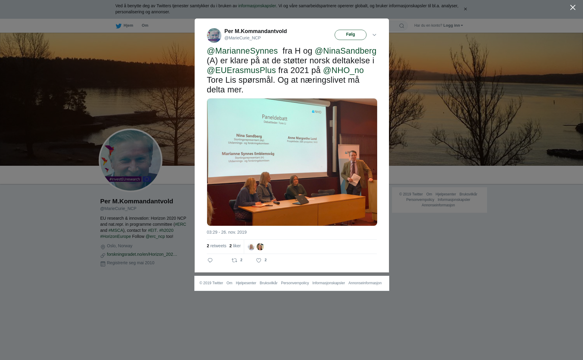 RT @MarieCurie_NCP: @MarianneSynnes fra H og @NinaSandberg (A) er klare på at de støtter norsk deltakelse i @EUErasmusPlus fra 2021 på @NHO_no Tore Lis spørsmål. Og at næringslivet må delta mer. https://t.co/zQPIPFqzfR