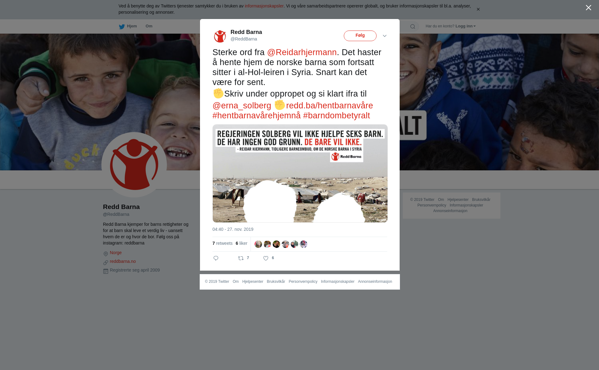 RT @ReddBarna: Sterke ord fra @Reidarhjermann. Det haster å hente hjem de norske barna som fortsatt sitter i al-Hol-leiren i Syria. Snart kan det være for sent.