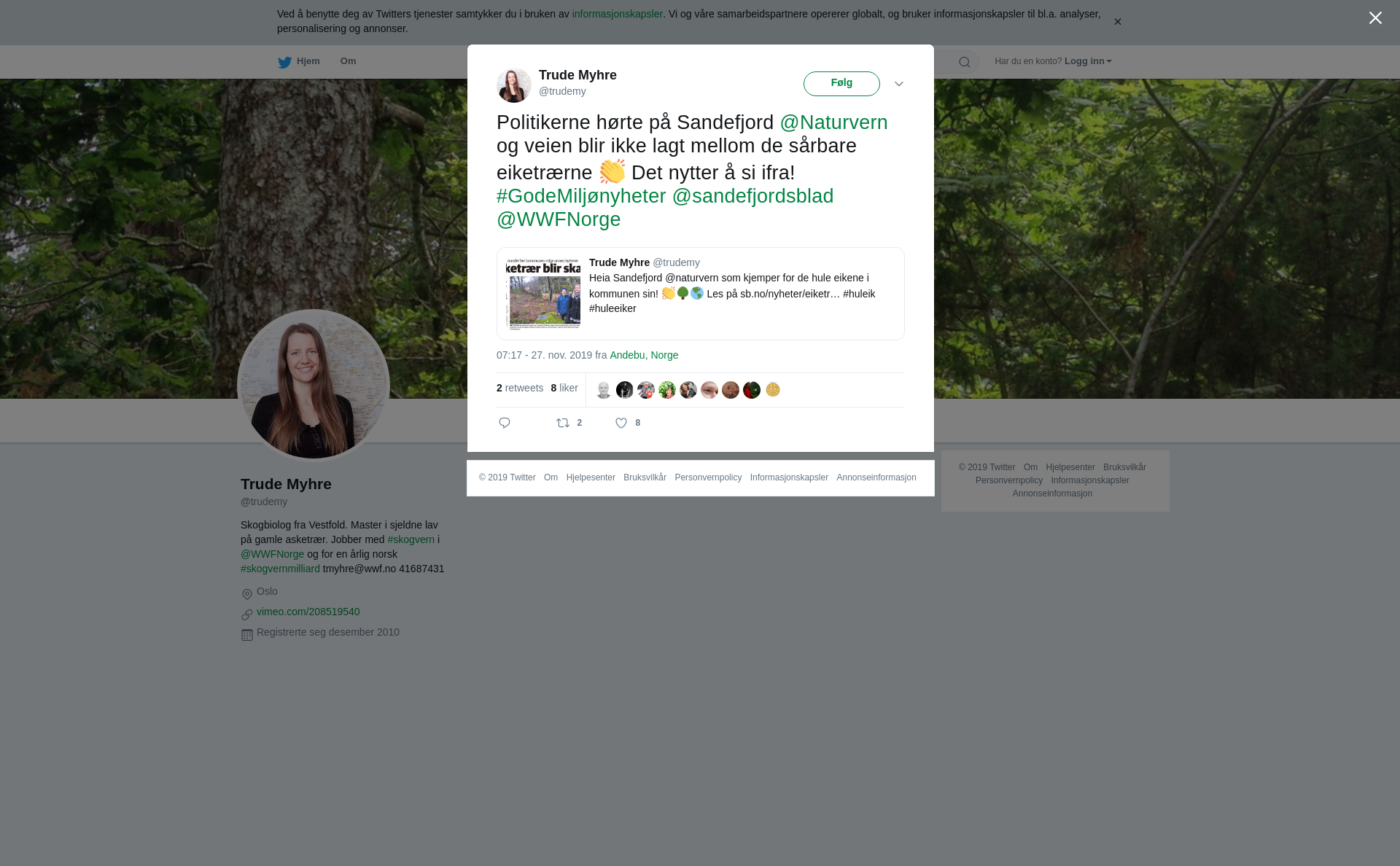 RT @trudemy: Politikerne hørte på Sandefjord @Naturvern og veien blir ikke lagt mellom de sårbare eiketrærne 👏 Det nytter å si ifra! #GodeMiljønyheter @sandefjordsblad @WWFNorge https://t.co/81rPlhygkj