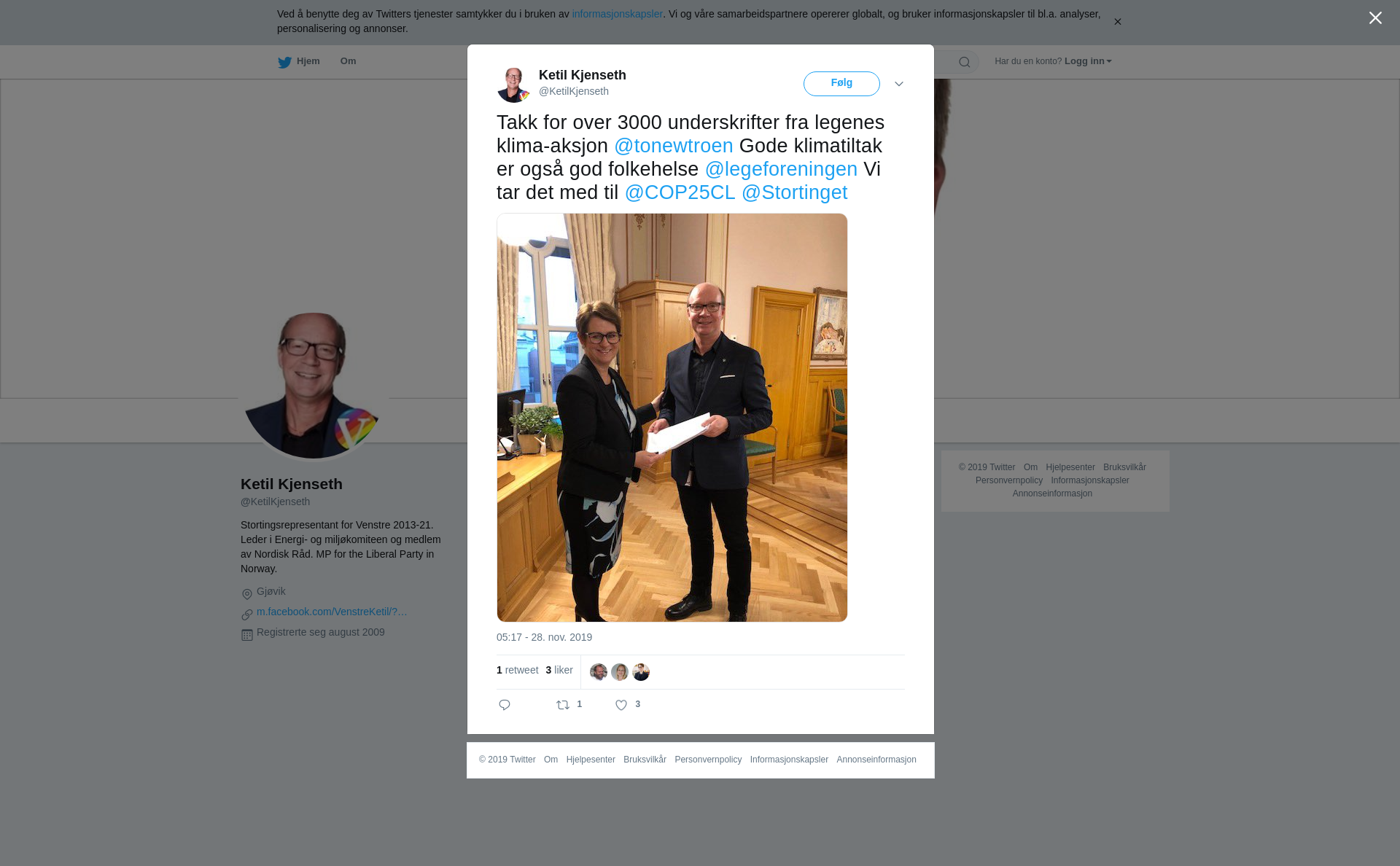 RT @KetilKjenseth: Takk for over 3000 underskrifter fra legenes klima-aksjon @tonewtroen Gode klimatiltak er også god folkehelse @legeforeningen Vi tar det med til @COP25CL @Stortinget https://t.co/BGb66sqjvW