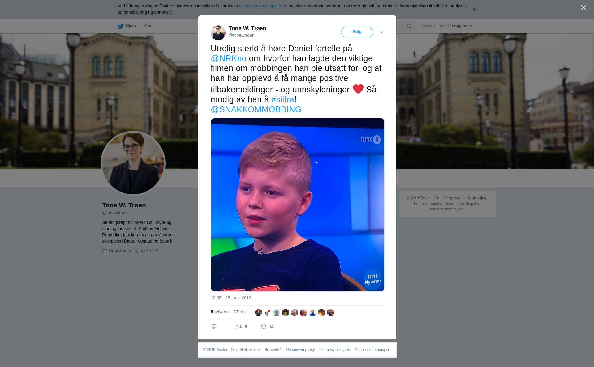 Utrolig sterkt å høre Daniel fortelle på @NRKno om hvorfor han lagde den viktige filmen om mobbingen han ble utsatt for, og at han har opplevd å få mange positive tilbakemeldinger - og unnskyldninger ❤️ Så modig av han å #siifra! @SNAKKOMMOBBING https://t.co/DcLY0xykqv