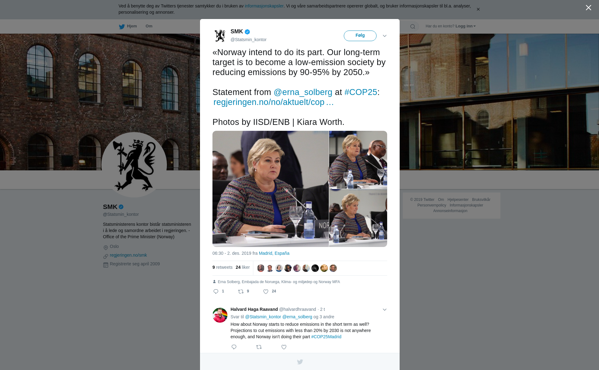 Statement from @erna_solberg at #COP25: https://t.co/O5GeTjq7dq