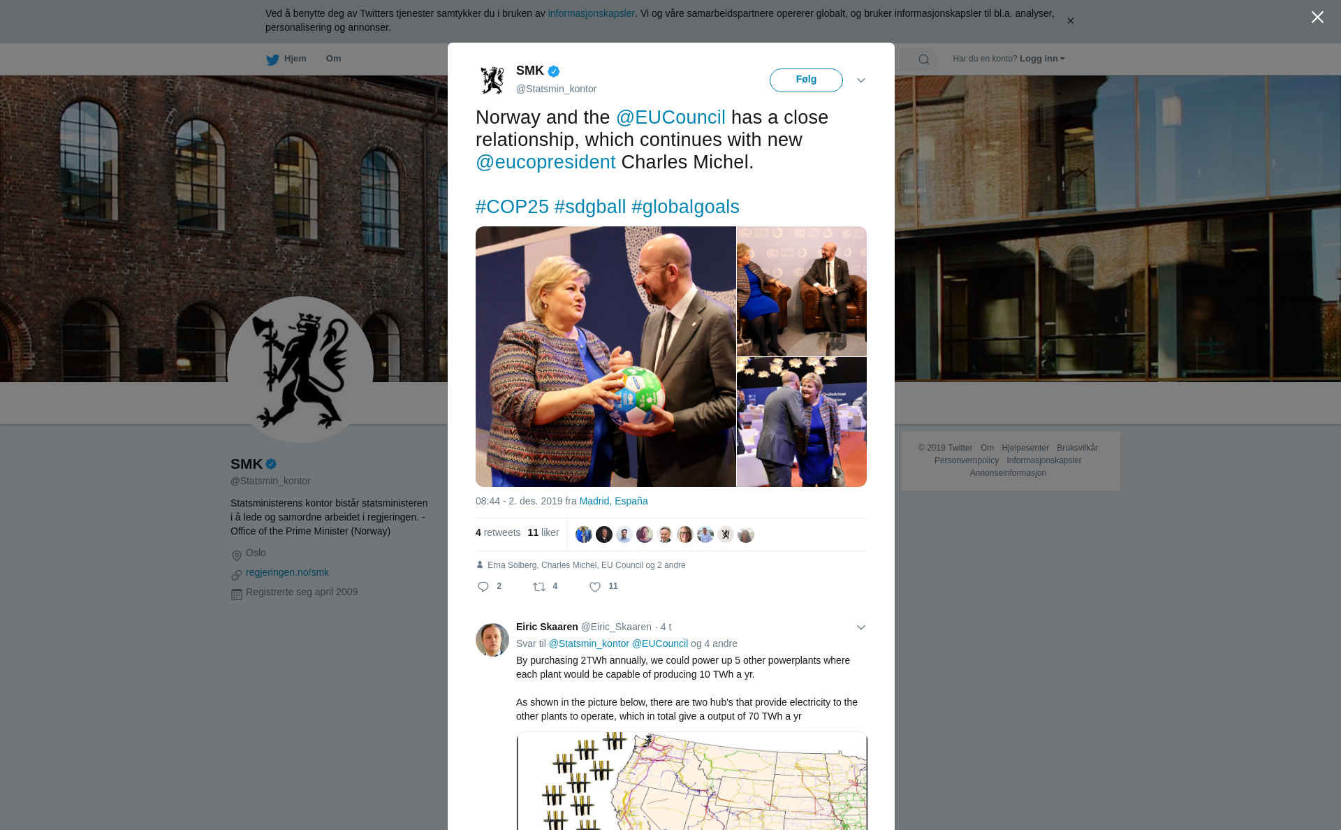 Norway and the @EUCouncil has a close relationship, which continues with new @eucopresident Charles Michel. #COP25 #sdgball #globalgoals https://t.co/rkV0NbGpeu