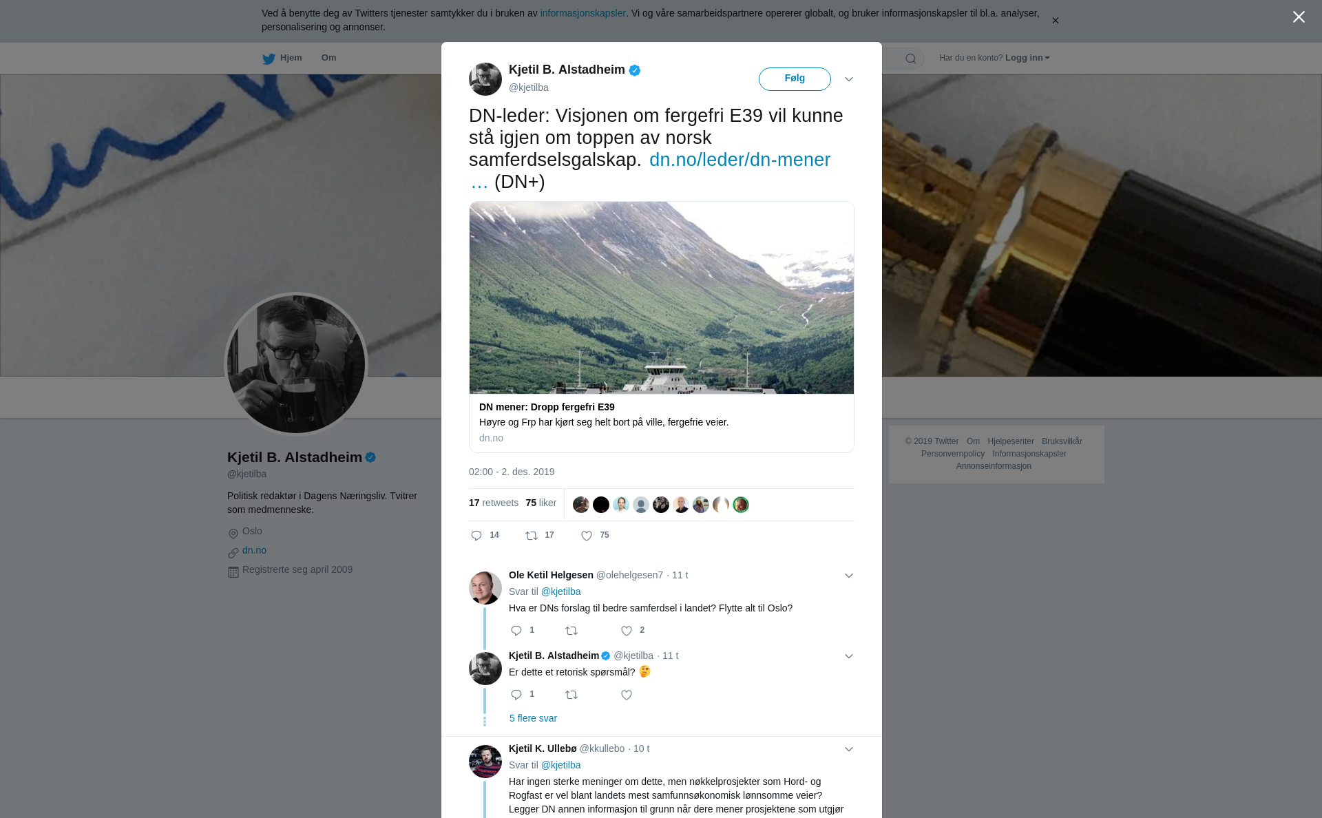 RT @kjetilba: DN-leder: Visjonen om fergefri E39 vil kunne stå igjen om toppen av norsk samferdselsgalskap. https://t.co/wLU2DfCmxC (DN+)