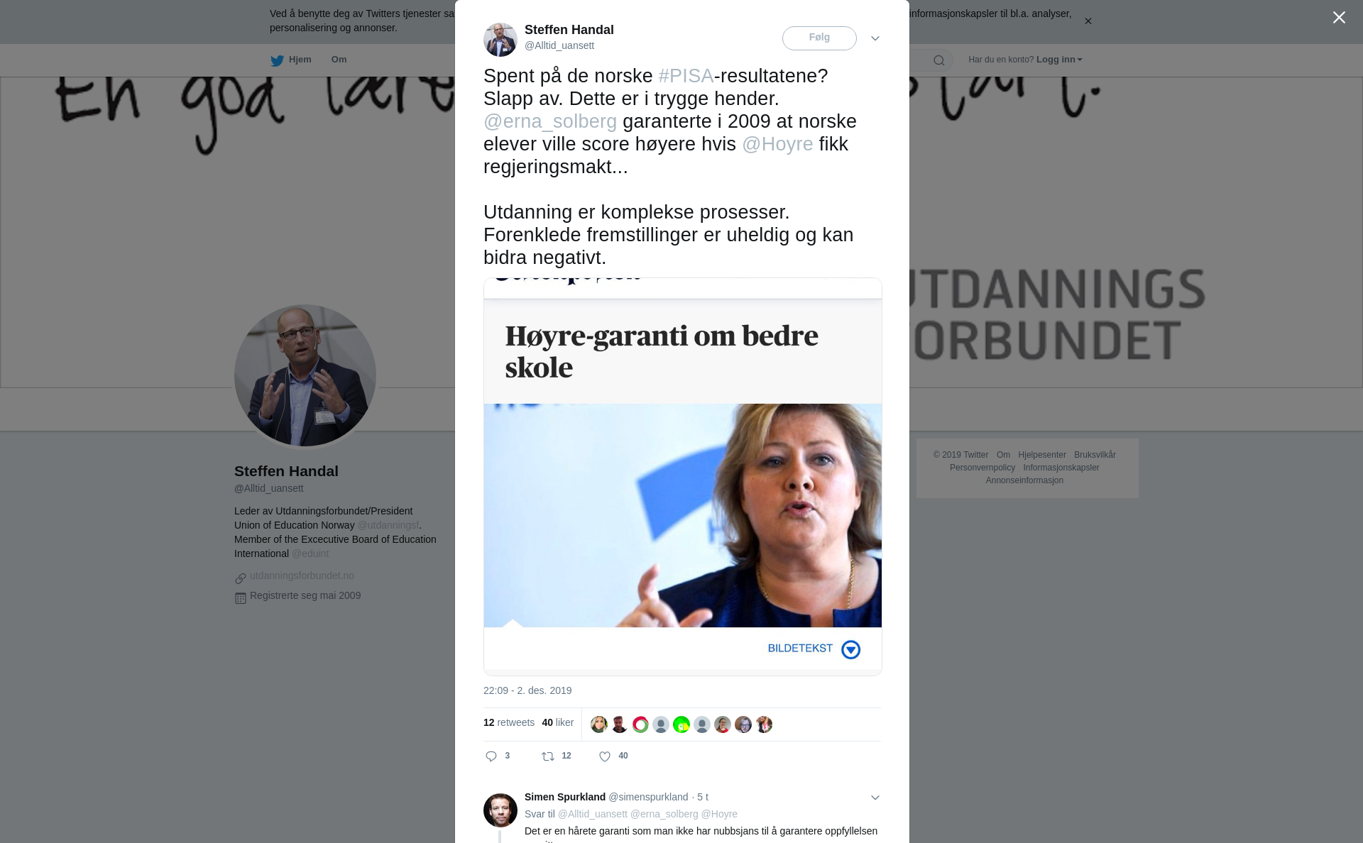 RT @Alltid_uansett: Spent på de norske #PISA-resultatene? Slapp av. Dette er i trygge hender. @erna_solberg garanterte i 2009 at norske elever ville score høyere hvis @Hoyre fikk regjeringsmakt...
