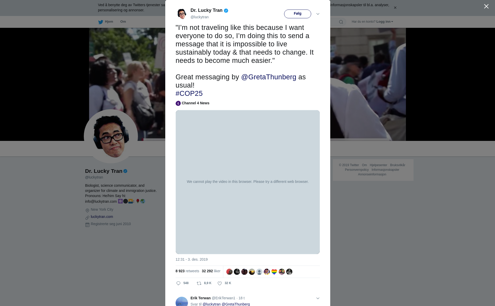 RT @luckytran: "I’m not traveling like this because I want everyone to do so, I’m doing this to send a message that it is impossible to live sustainably today & that needs to change. It needs to become much easier."