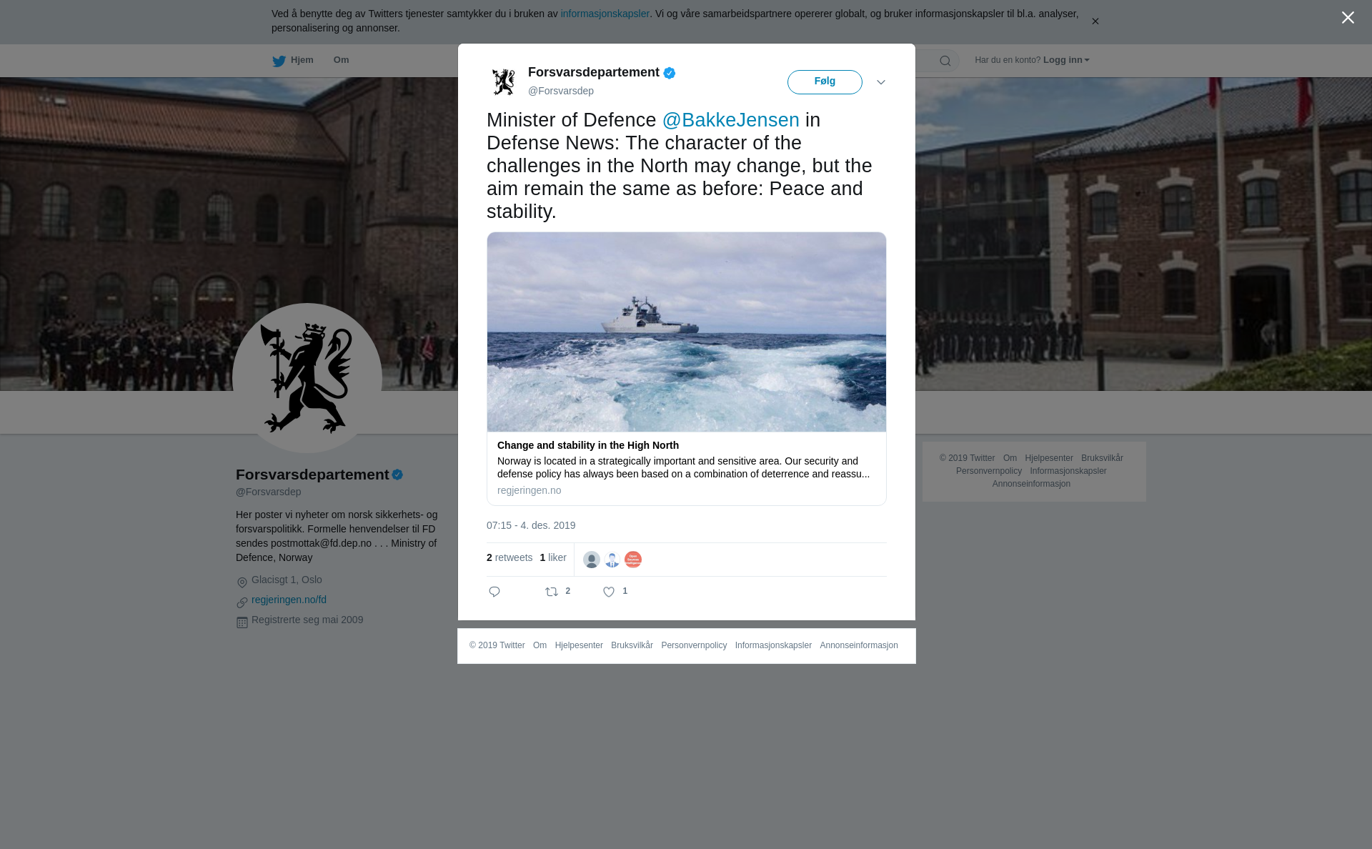 Norway is located in a strategically important and sensitive area. Our security and defense policy has always been based on a combination of deterrence and reassurance, of credible defense, dialogue and cooperation. The aim is low tension, transparency, predictability and good neighborly relations in the High North. We want to continue this policy — to secure peace and stability in the region.