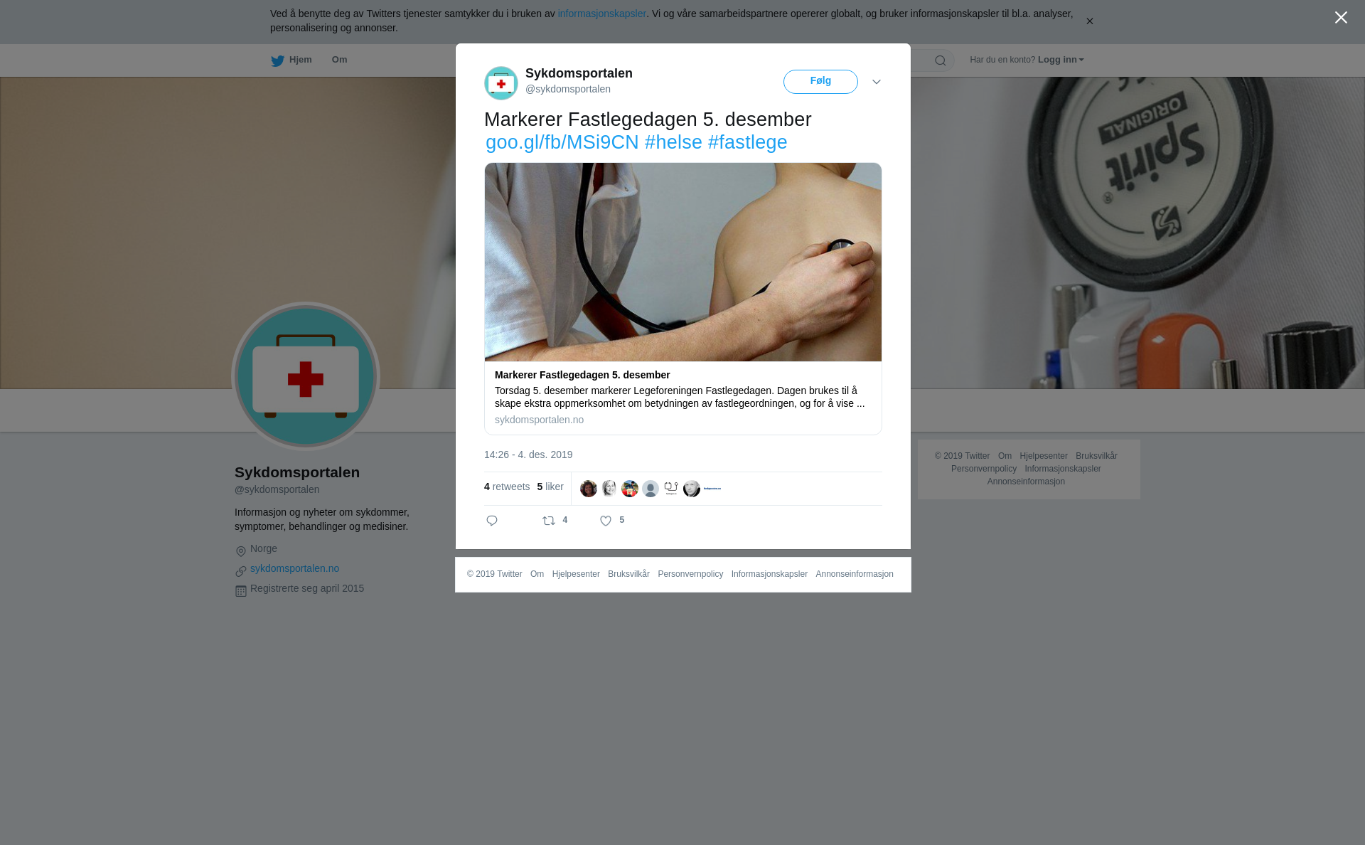 RT @sykdomsportalen: Markerer Fastlegedagen 5. desember https://t.co/PODKP9bfcw #helse #fastlege