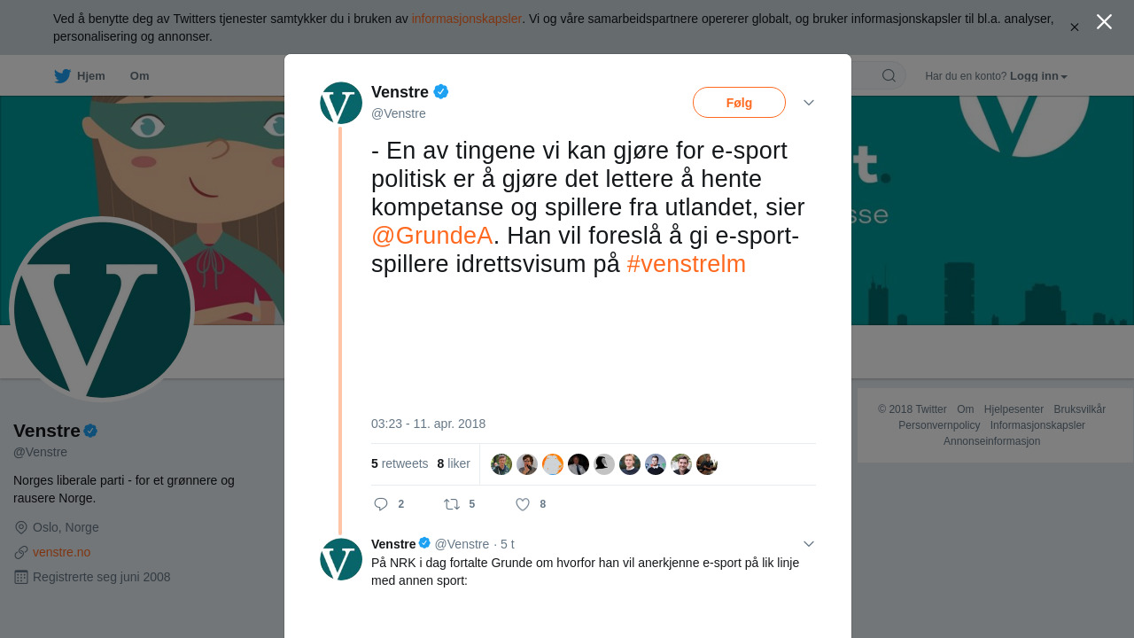 - En av tingene vi kan gjøre for e-sport politisk er å gjøre det lettere å hente kompetanse og spillere fra utlandet, sier @GrundeA. Han vil foreslå å gi e-sport-spillere idrettsvisum på #venstrelm https://t.co/33zii9PRLN