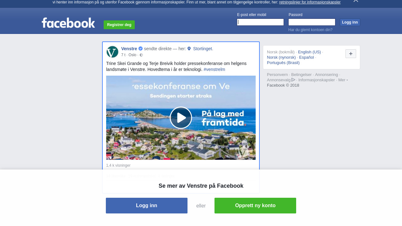 Trine Skei Grande og Terje Breivik holder pressekonferanse om helgens landsmøte i Venstre. Hovedtema i år er teknologi. #venstrelm