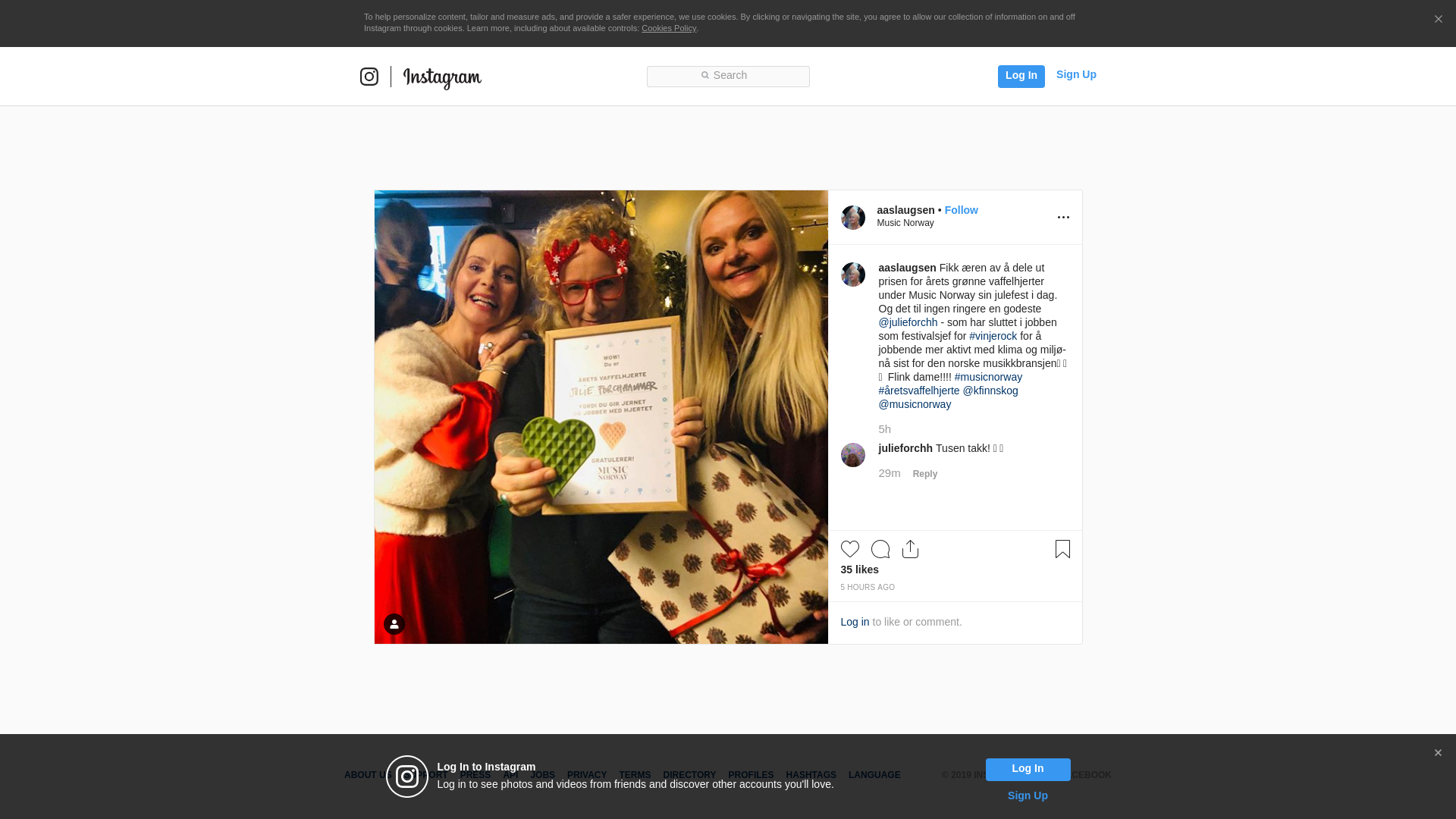 Fikk æren av å dele ut prisen for årets grønne vaffelhjerter under Music Norway sin julefest i dag. Og det til ingen ringere en godeste @julieforchh - som har sluttet i jobben som festivalsjef for #vinjerock for å jobbende mer aktivt med klima og miljø- nå sist for den norske musikkbransjen💚👏👍 Flink dame!!!! #musicnorway #åretsvaffelhjerte @kfinnskog @musicnorway