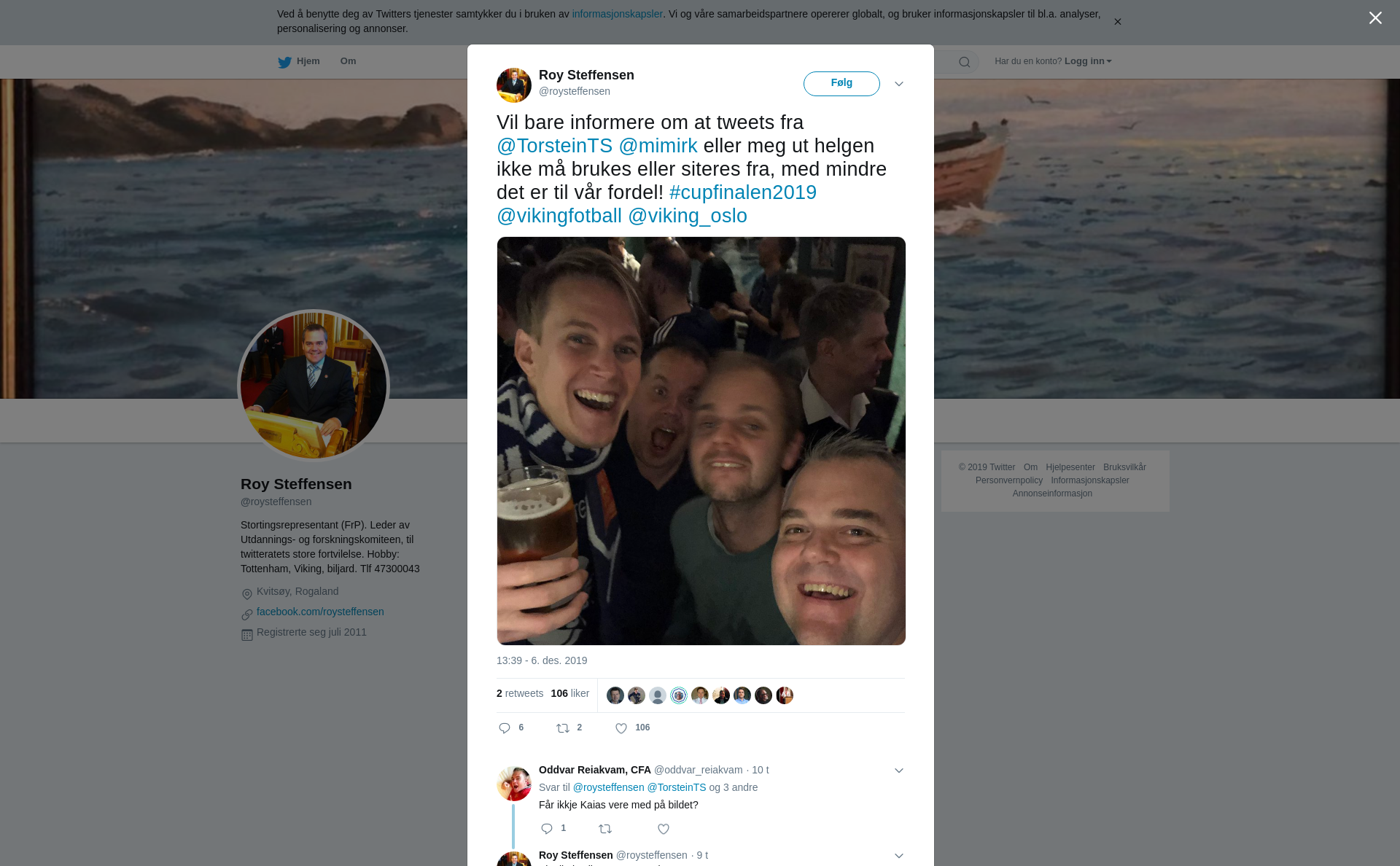 Vil bare informere om at tweets fra @TorsteinTS @mimirk eller meg ut helgen ikke må brukes eller siteres fra, med mindre det er til vår fordel! #cupfinalen2019 @vikingfotball @viking_oslo https://t.co/f4ncg3U4wl