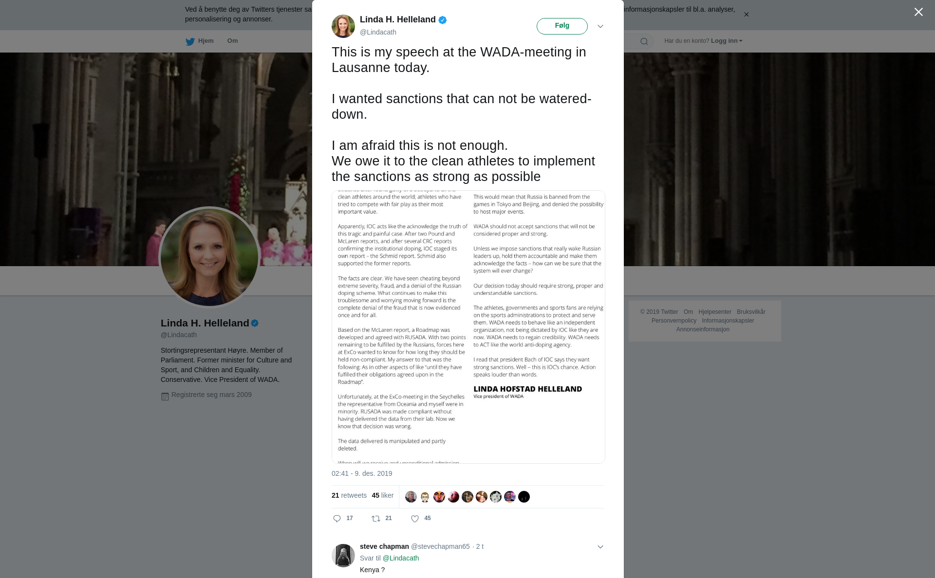 We owe it to the clean athletes to implement the sanctions as strong as possible https://t.co/Vh99KQsO3z