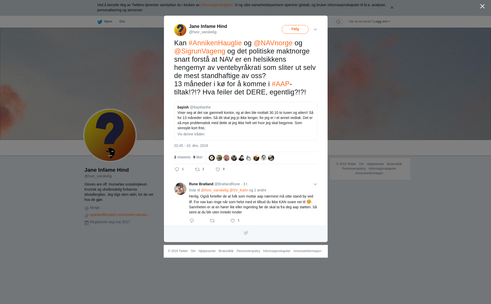 RT @hvor_vanskelig: Kan #AnnikenHauglie og @NAVnorge og @SigrunVageng og det politiske maktnorge snart forstå at NAV er en helsikkens hengemyr av ventebyråkrati som sliter ut selv de mest standhaftige av oss?