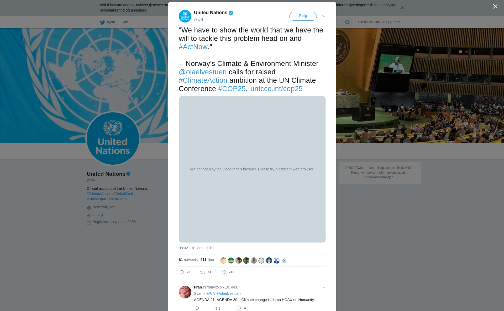 RT @UN: "We have to show the world that we have the will to tackle this problem head on and #ActNow." -- Norway's Climate & Environment Mi…