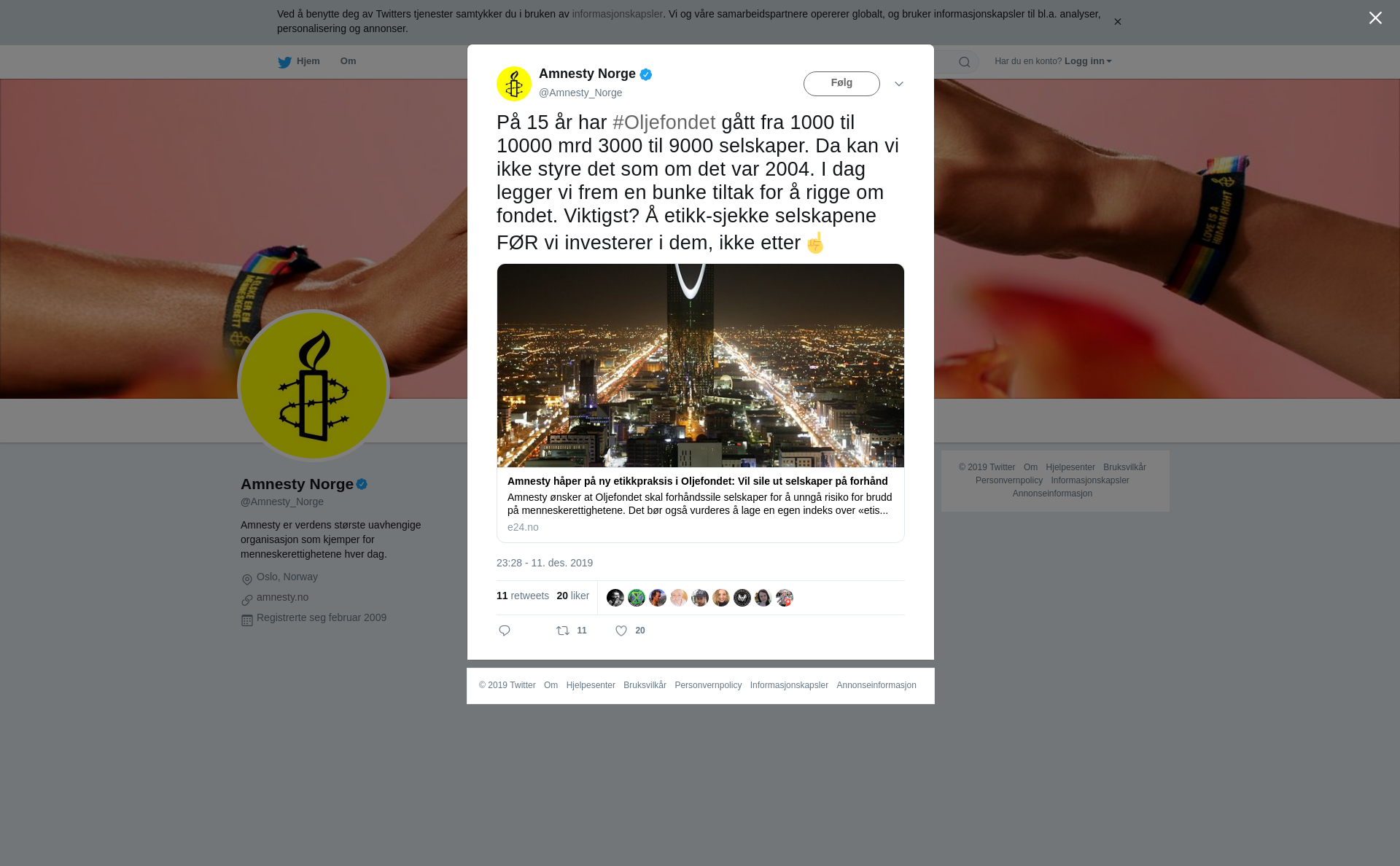 RT @Amnesty_Norge: På 15 år har #Oljefondet gått fra 1000 til 10000 mrd 3000 til 9000 selskaper. Da kan vi ikke styre det som om det var 2004. I dag legger vi frem en bunke tiltak for å rigge om fondet. Viktigst? Å etikk-sjekke selskapene FØR vi investerer i dem, ikke etter☝️https://t.co/EcfzIWV5mi