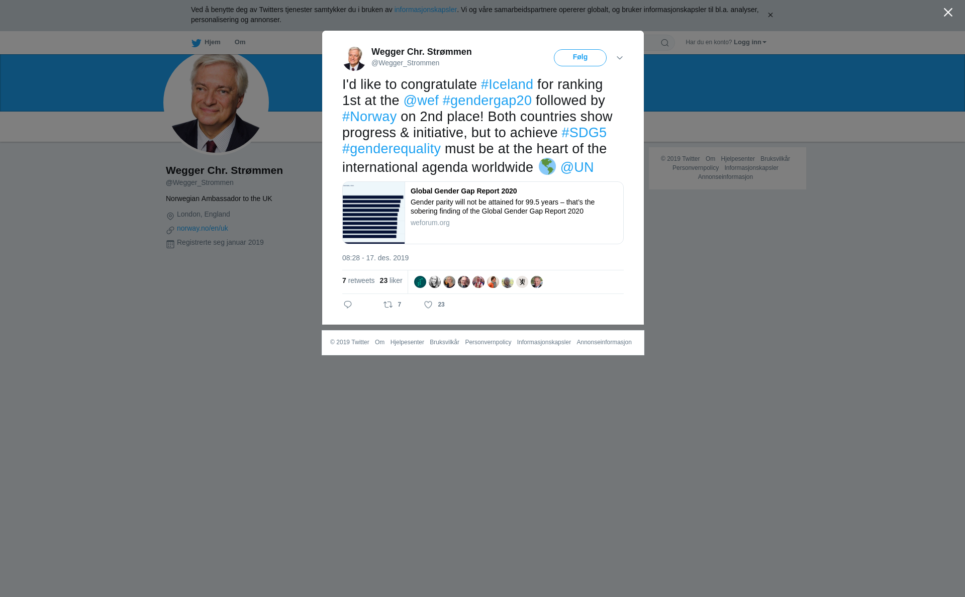 RT @Wegger_Strommen: I'd like to congratulate #Iceland for ranking 1st at the @wef #gendergap20 followed by #Norway on 2nd place! Both countries show progress & initiative, but to achieve #SDG5 #genderequality must be at the heart of the international agenda worldwide 🌎 @UN