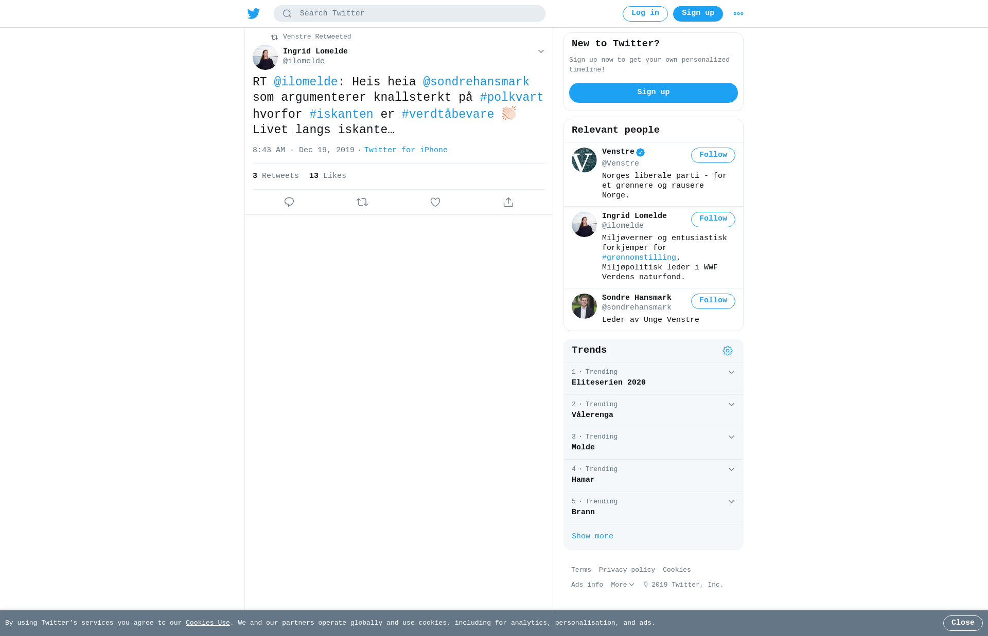 RT @ilomelde: Heis heia @sondrehansmark som argumenterer knallsterkt på #polkvart hvorfor #iskanten er #verdtåbevare 👏🏻 Livet langs iskanten er helt avgjørende for hele dette unike og sårbare økosystemet💚 Takk @Venstre som tar kampen for #MerNatur @Trinesg @olaelvestuen @Atle63 @audunrod