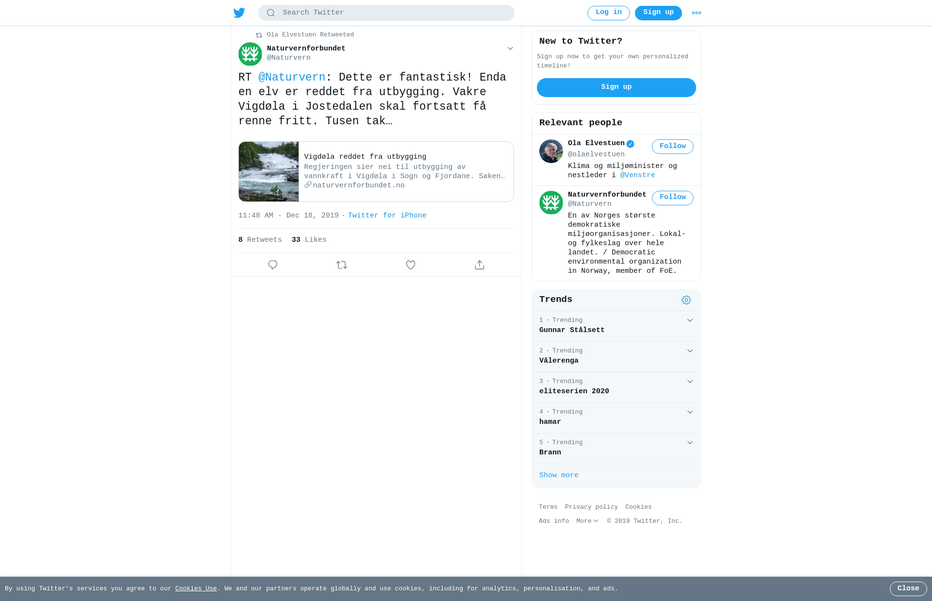 RT @Naturvern: Dette er fantastisk! Enda en elv er reddet fra utbygging. Vakre Vigdøla i Jostedalen skal fortsatt få renne fritt. Tusen takk til @Venstre og @Regjeringen, som har gitt oss mange seire i kampen for norske vassdrag den siste tiden! https://t.co/f700bwgQKo #naturvern #vassdrag
